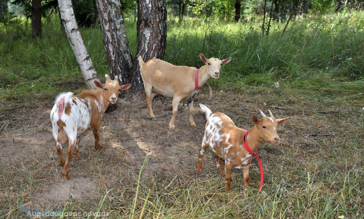 Netālu aplokā ganās divi pieauguši āži, kurus saimnieki piedāvā kā vaisliniekus. Uz lauka ganās četras Latvijas vietējās kaziņas, kas dod ļoti gardu pienu, no kura top siers un krēmsiers.