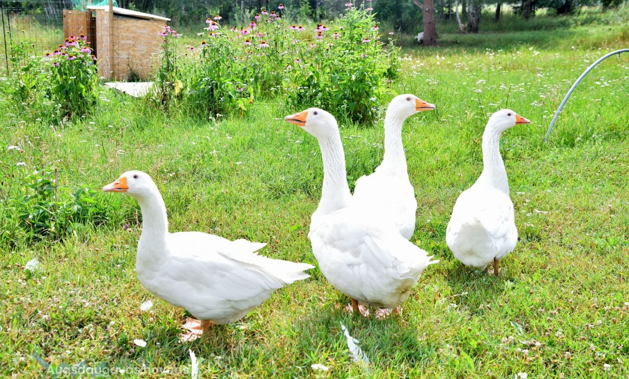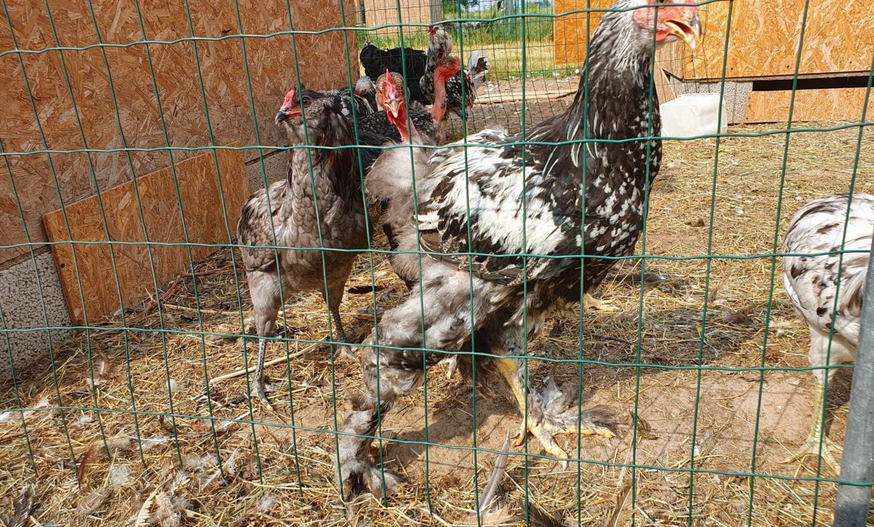 Vineta un Aitačs laipni izvadā ekskursijā pa nelielo saimniecību un izrāda neparastas putnu šķirnes – te mīt pērļu vistas, paipalas, Ķīnas zīda vistas, Puškinas un Pavlovas vistas, Lavandas Ameraukāni, Kohini, Sudraba un Zelta Brāventes, Favelores, Bramas, Araukanas, Antverpenes vistas, ungāru plikkaklainās, Orlovas vistas, Džersijas giganti un daudzi citi. Īpaši eksotisks ir Ayam Cemani šķirnes gailis, kas visnotaļ ir melnā krāsā, arī gaļa esot melna, bet garšas ziņā neatšķiroties no parastas vistas gaļas. Aitača mīlules ir Sultanas šķirnes baltās vistas ar kuplu “turbānu” uz galvas. Vinetai ir mīļš plikkaklainais gailis vārdā Eiriks, ko nopirkusi par vienu eiro no kādas tantes, kas gribēja no gaiļa atbrīvoties.
