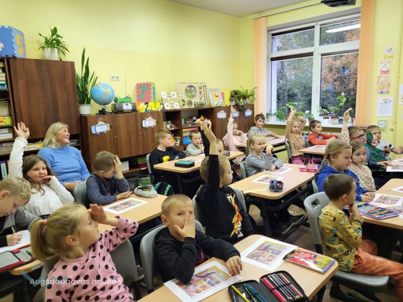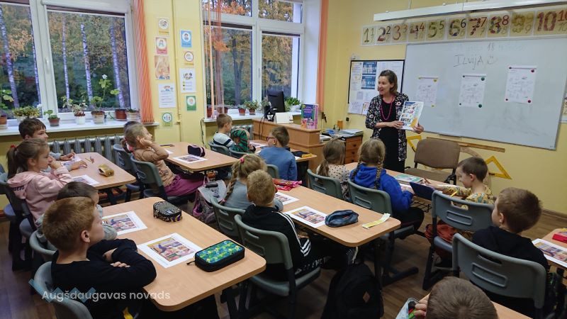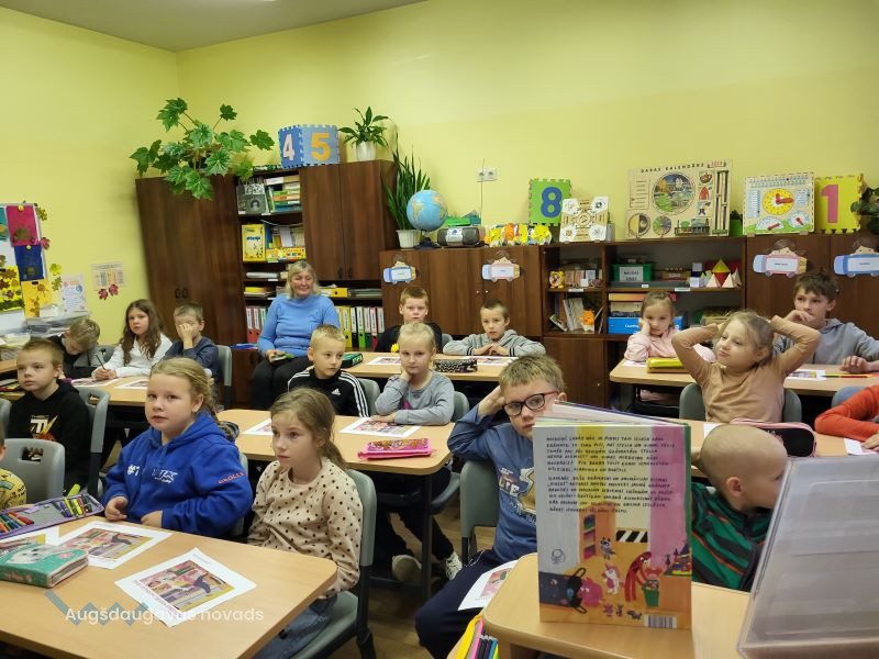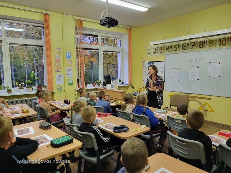 Oktobrī pie Naujenes pamatskolas sākumskolas skolēniem atkal viesojās Naujenes bibliotēkas Bērnu nodaļas bibliotekāre Ilvija GŽIBOVSKA, lai turpinātu “Bērnu žūrija 2023” lasījumus.