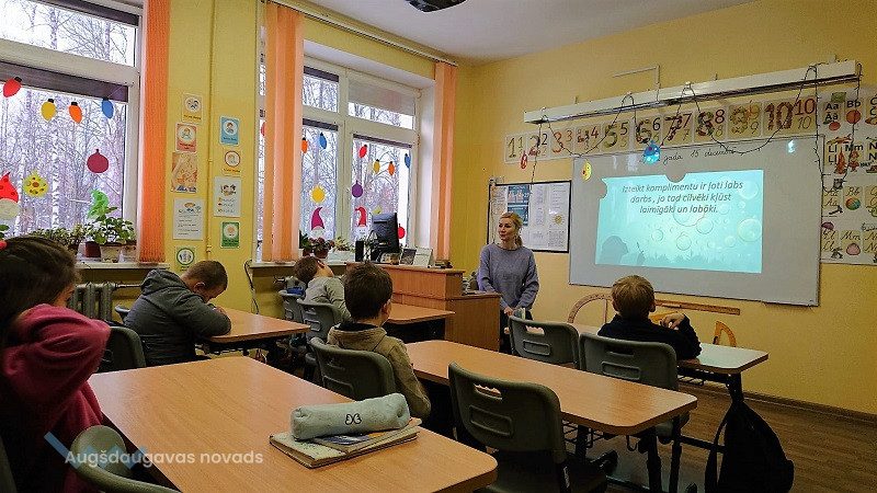 Skolēni noskaidroja, kādus eksotiskos dzīvniekus mēdz turēt mājās cilvēki, kas ir invazīva suga un kāpēc Spānijas kailgliemezis ir bīstams. Savukārt nodarbības noslēgumā skolēni stāstīja, kā skolā notiek “Labo darbu nedēļa”, izlasīja Elzas stāstu par labajiem darbiem un mācījās izteikt komplimentus viens otram.