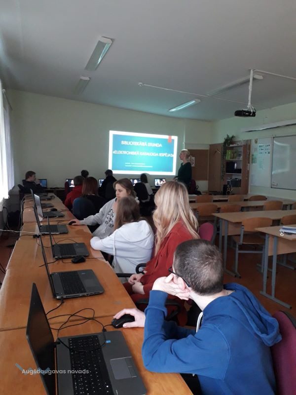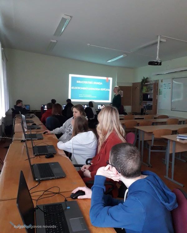 22. martā Pie Naujenes pamatskolas 7. klases skolēniem viesojās Naujenes tautas bibliotēkas Bērnu nodaļas bibliotekāre Aiga SOLDATJONOKA. Nodarbības laika skolēni tika iepazīstināti ar Naujenes bibliotēkas e-pakalpojumiem: elektronisko grāmatu katalogu un e- grāmatu bibliotēku. Audzēkņi iemācījās atrast nepieciešamo grāmatu pēc nosaukuma, autora vai tēmas Augšdaugavas novada bibliotēku elektroniskajā katalogā https://naujene.biblioteka.lv/alise, kā arī noskaidroja vai meklētais izdevums ir bibliotēkas krājumā, vai tas šobrīd ir pieejams, vai arī ir izsniegts lasītājam.