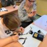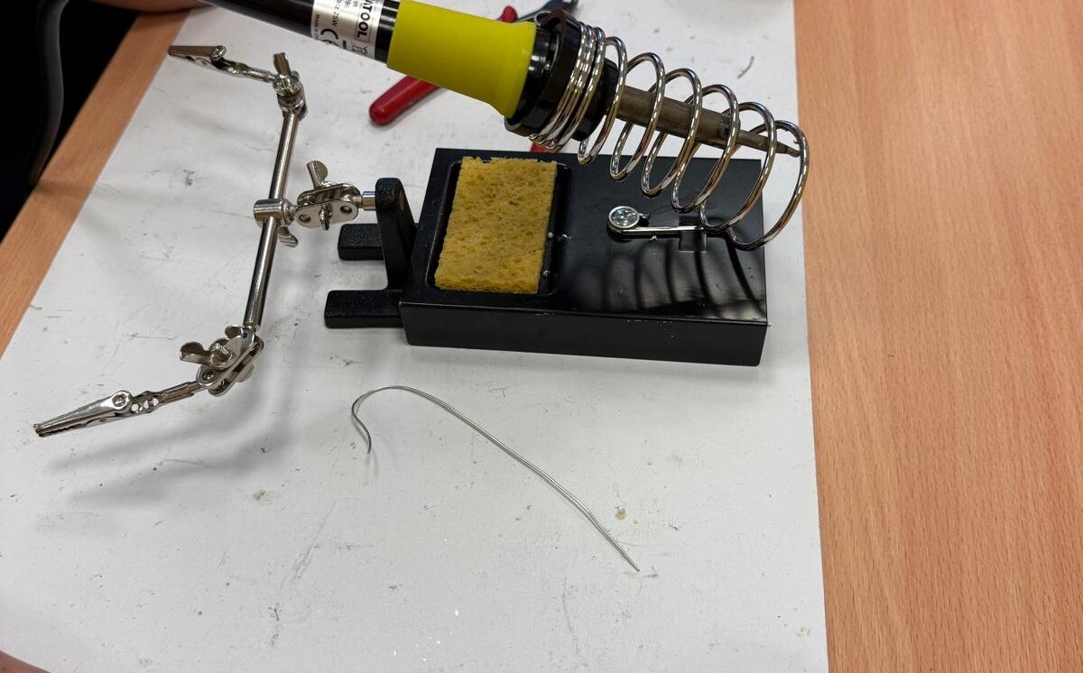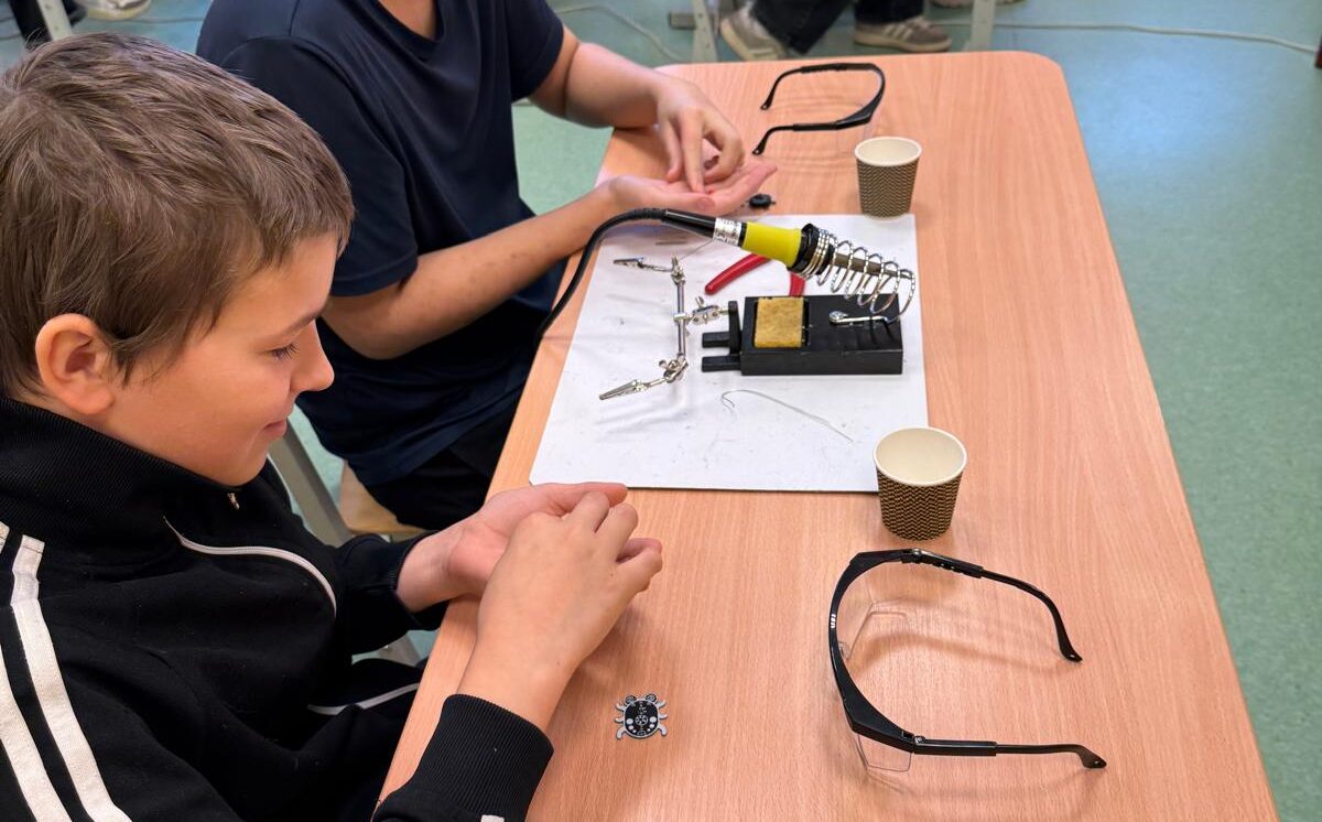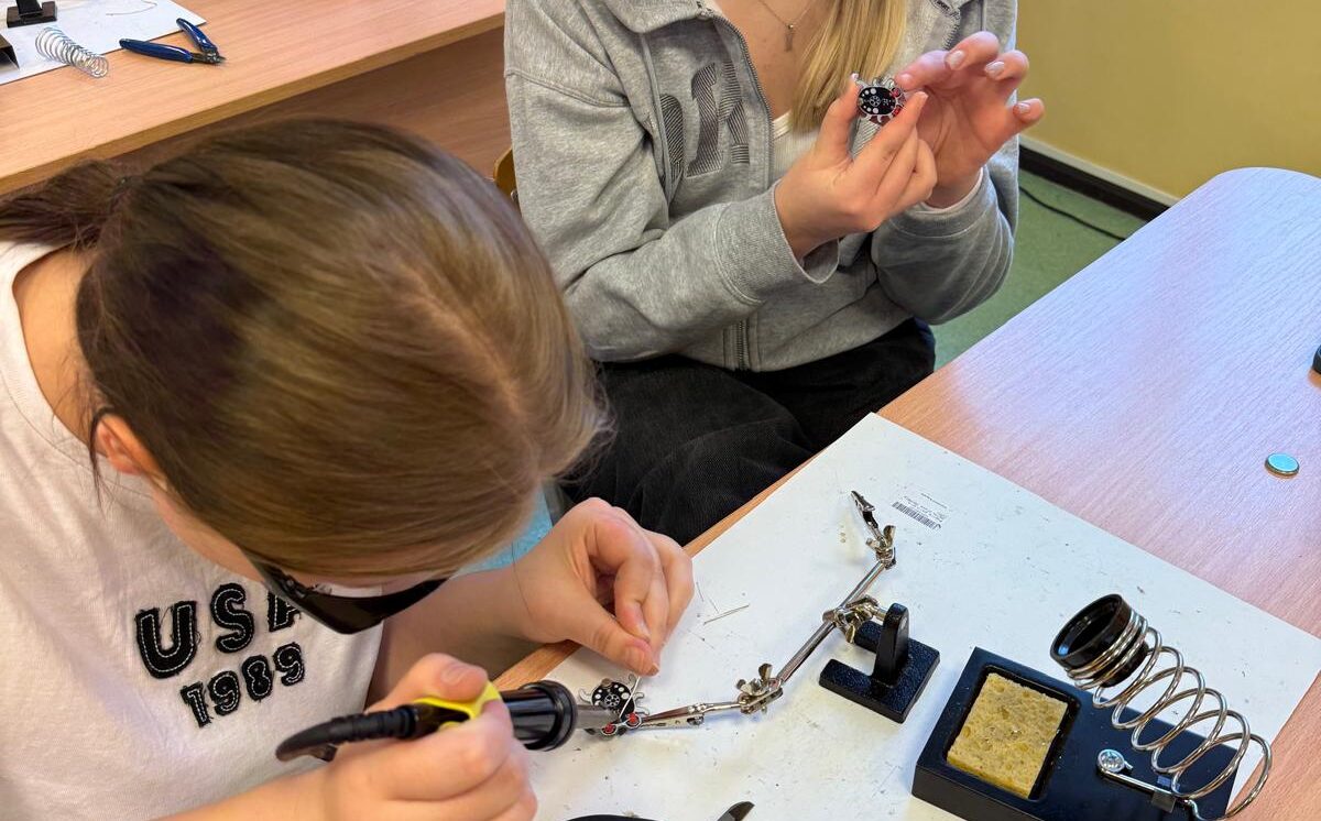 Darbojās praktiski: Ar lodāmuru rokās veidoja elektroniskās ierīces, stingri ievērojot drošības noteikumus.