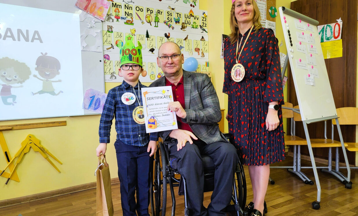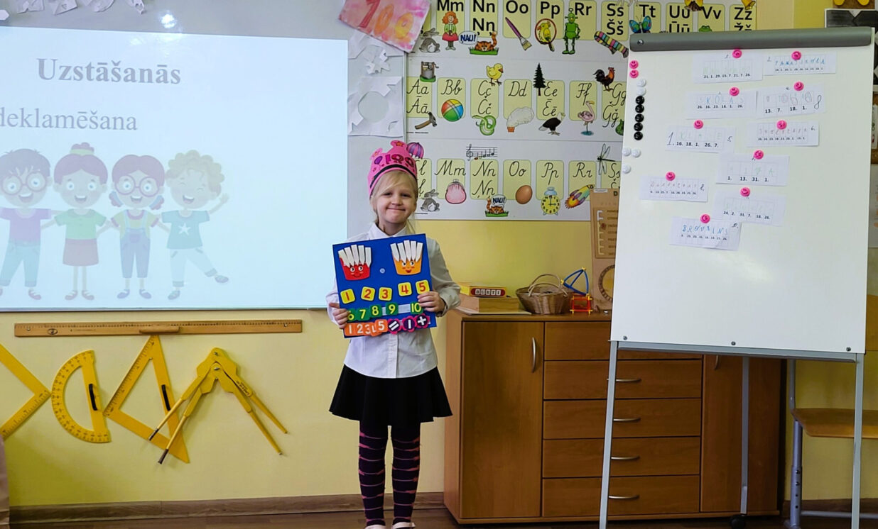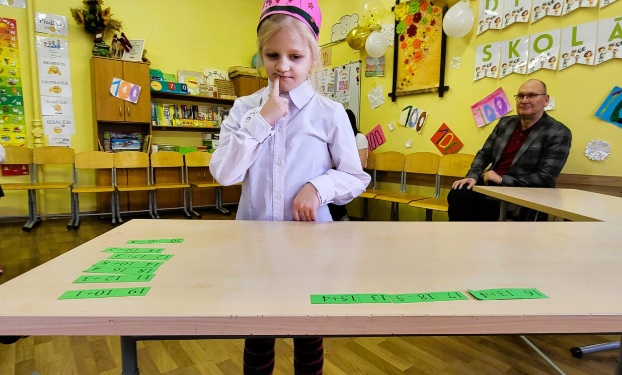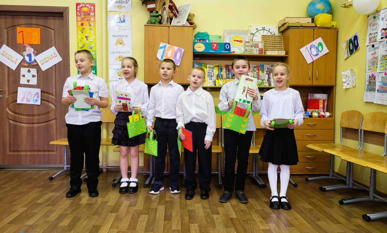 Naujenes pamatskolas pirmklasnieki svin 100 dienas skolā