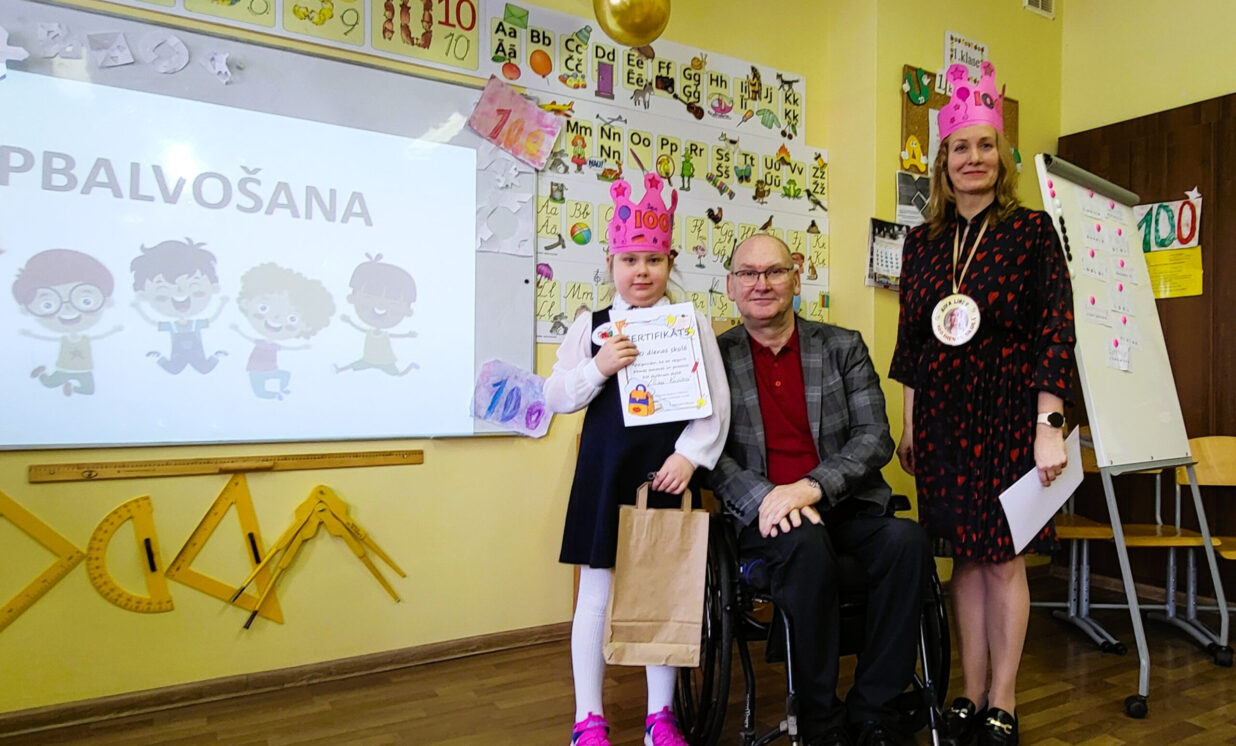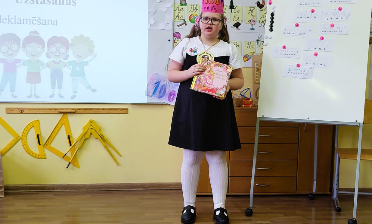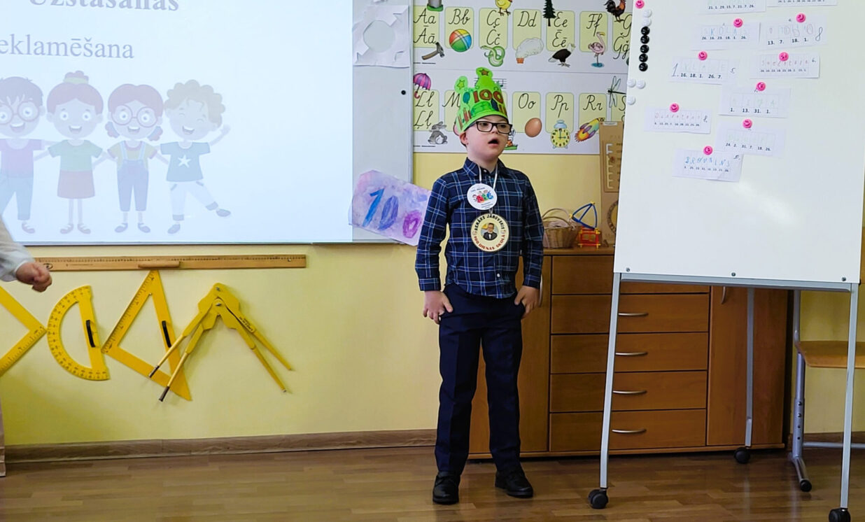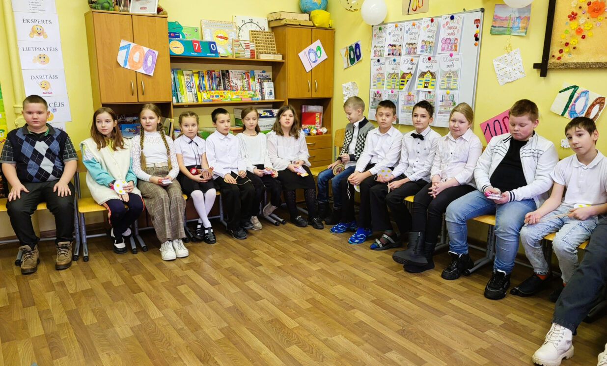 Svētku dienā 1. klasē valdīja īpaša gaisotne – to rotāja bērnu zīmējumi un plakāti ar skaitli 100, bet paši pirmklasnieki bija sagatavojuši priekšnesumus, lai parādītu, ko šajā laikā iemācījušies. Svētku laikā bērni piedalījās aizraujošās staciju aktivitātēs, kurās demonstrēja savas jauniegūtās zināšanas un prasmes. Spēles un uzdevumi padarīja šo dienu neaizmirstamu!