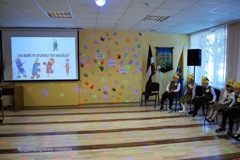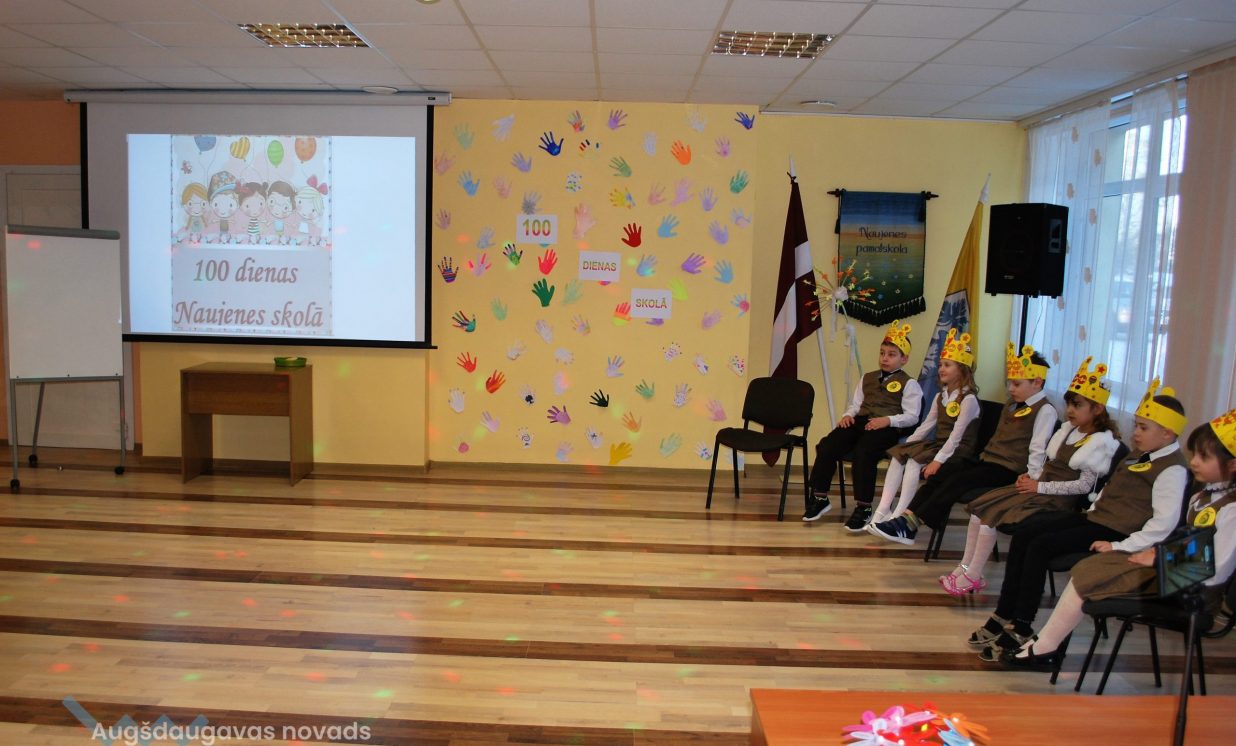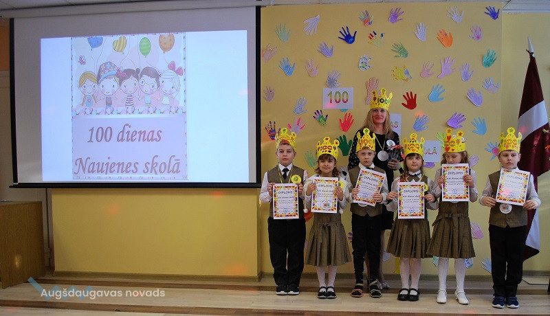 Naujenes pamatskolas pirmklasnieki svin pirmās 100 dienas skolā