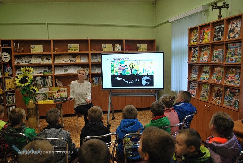 Bērnu nodaļas bibliotekāre Aiga SOLDATJONOKA iepazīstināja mazos lasīšanas ekspertus ar konkursa noteikumiem, grāmatu kolekciju. Šogad ekspertiem darba būs nedaudz vairāk – katrā vecuma grupā vērtēšanai ir septiņas grāmatas, bet Vecāku žūrijas kolekcijā – piecas. Nodarbības turpinājumā bibliotekāre Aiga priekšā nolasīja Terezas Sedivas grāmatu “Kurmis melni baltā alā”. Pirms kopīgas lasīšanas bērni uzzināja daudz interesantu faktu par kurmjiem.