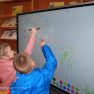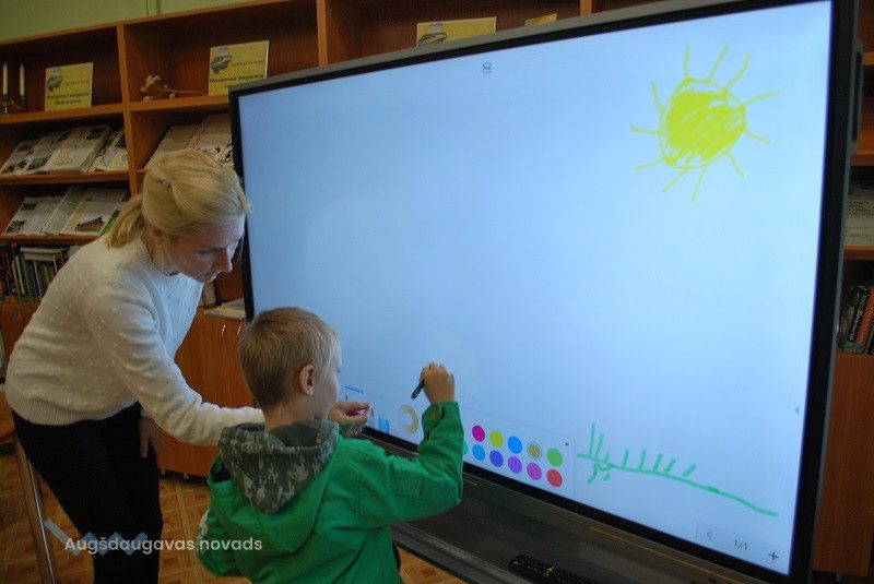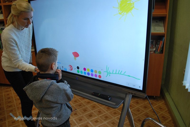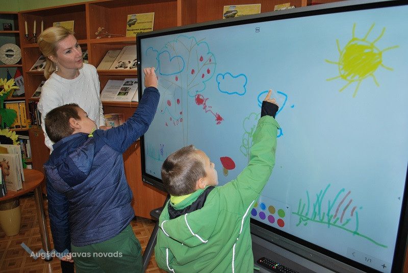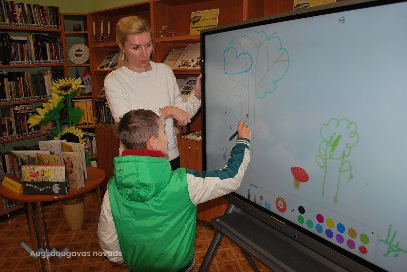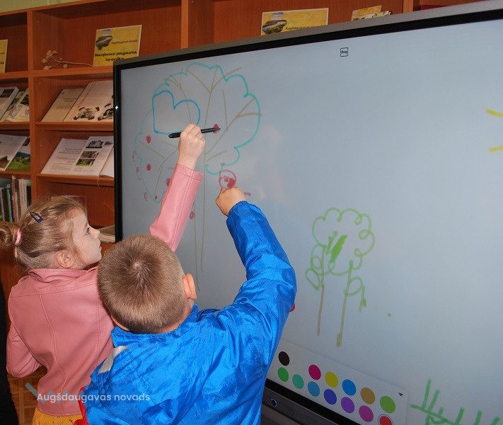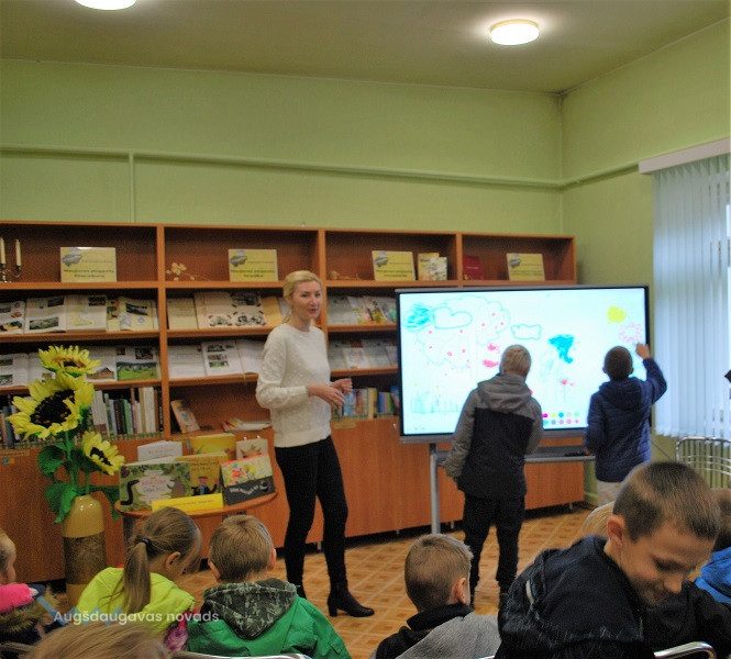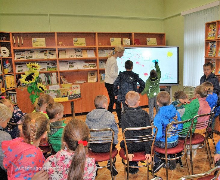 Nodarbības noslēgumā bērni kopā ar bibliotekāri Aigu izveidoja kopīgu gleznu. Katrs skolēns uzzīmēja savu krāsainās pasaules fragmentu. Šī glezna aicina: “Izlieniet no savām alām – pasaule ir tik skaista!” Liels paldies Naujenes tautas bibliotēkas bibliotekārēm, kuras ar interesantiem paņēmieniem ieintriģē skolēnus lasīt grāmatas! Ar nepacietību gaidām ciemos mūsu draudzeni – bibliotekāri Aigu!