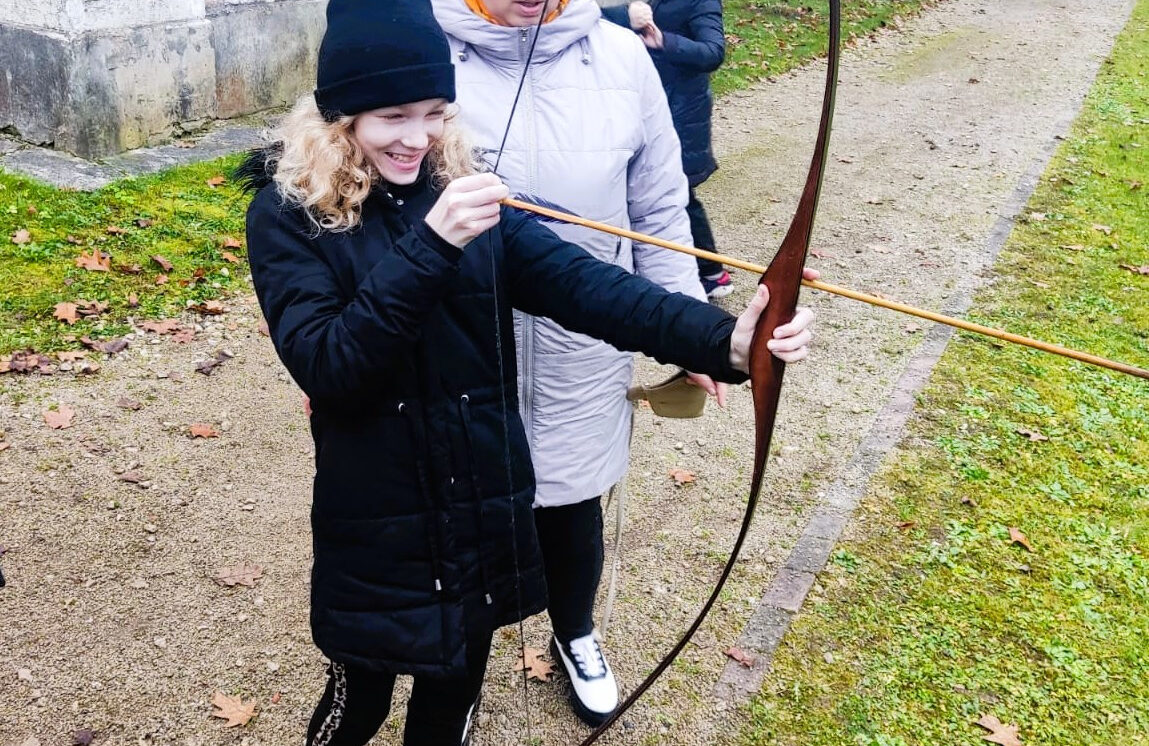 Atgriežoties muzejā, skolēni varēja pārbaudīt savu veiklību, šaujot ar loku mērķī. Šīs aktivitātes sniedza daudz prieka un veicināja sadarbību, azartu un precizitāti.