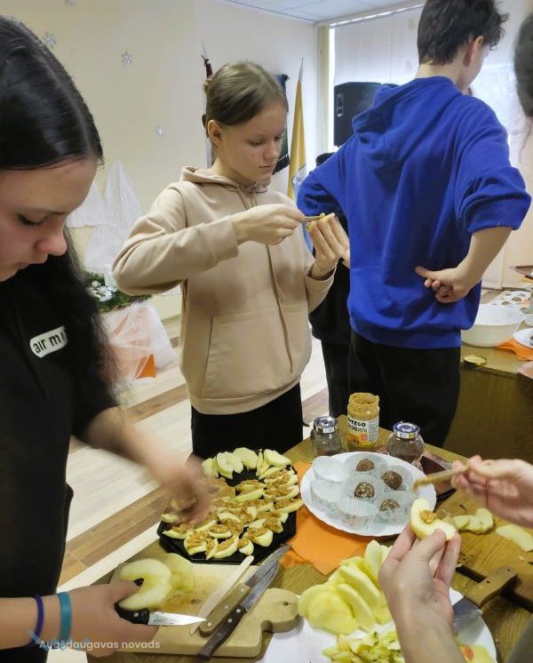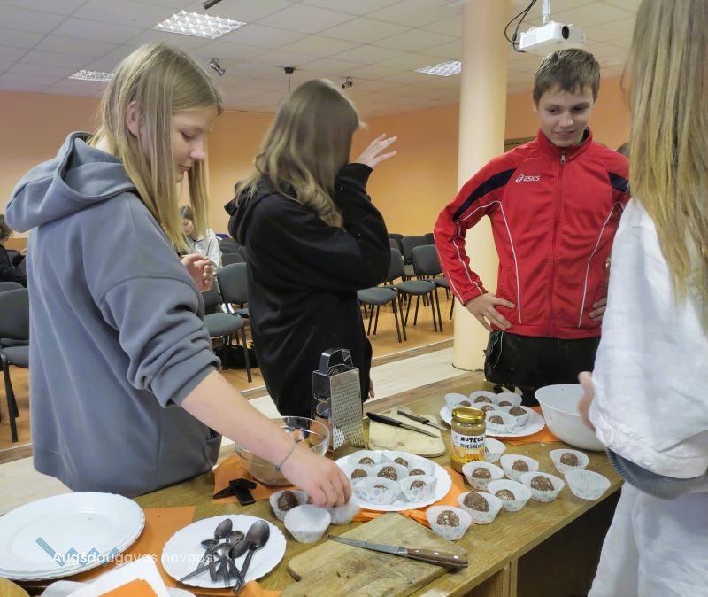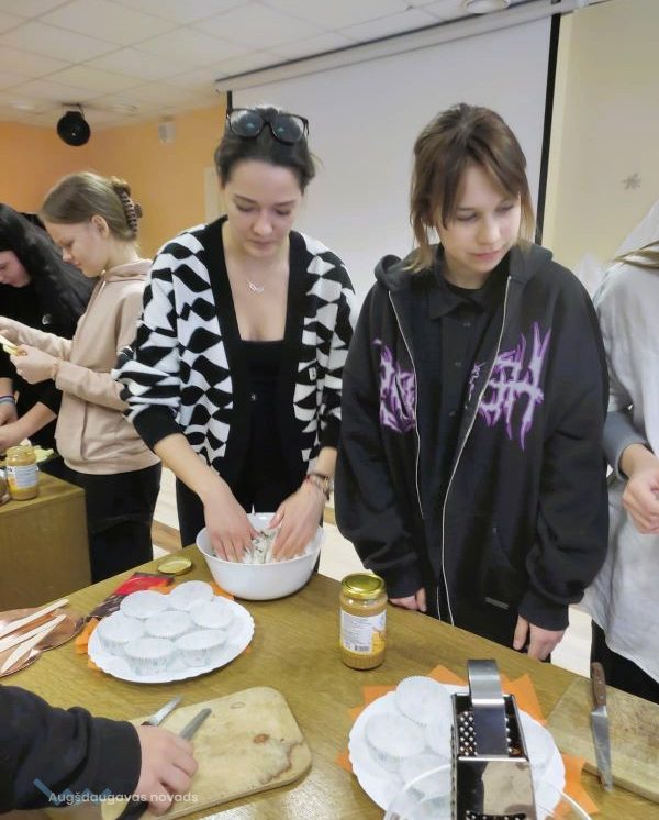 Nodarbības noslēgumā skolēni Danas Piteronokas vadībā pagatavoja veselīgus biezpiena našķus.