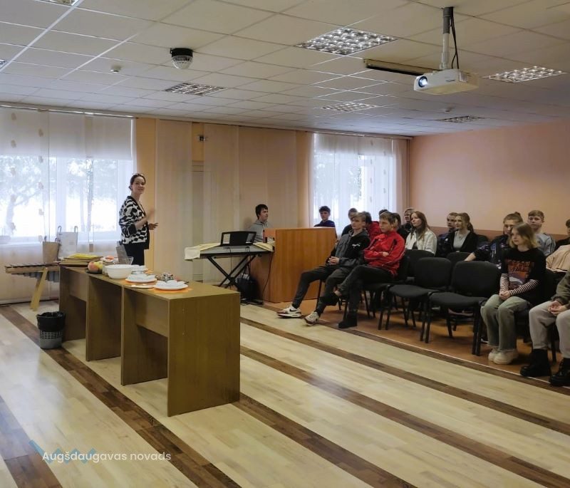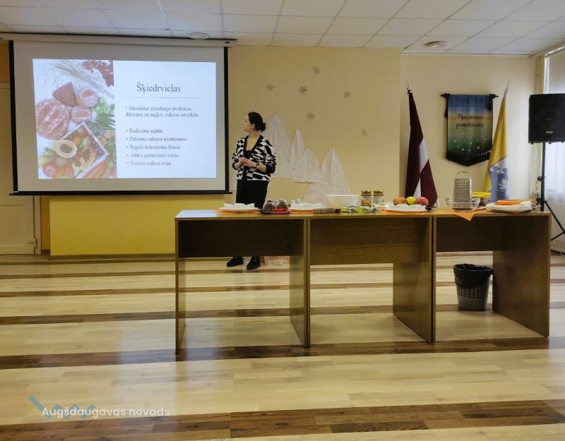 Projekta Nr. 9.2.4.2/16/I/070 “Pasākumi vietējas sabiedrības veselības veicināšanai un slimību profilaksei Augšdaugavas novadā” ietvaros 4. decembrī Naujenes pamatskolas 7. – 9. klases skolēni tikās ar uztura speciālisti Danu PITERONOKU. Viņa skolēniem pastāstīja par veselīga uztura pamatprincipiem, sabalansēta uztura ideju, galvenajām uzturvielām, kā arī pētīja iecienīto našķu un uzkodu sastāvu, iemācīja lasīt produktu etiķetes, pievērst uzmanību produktu sastāvam, kā arī izvēlēties veselīgākas uzkodas.