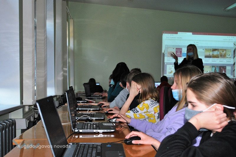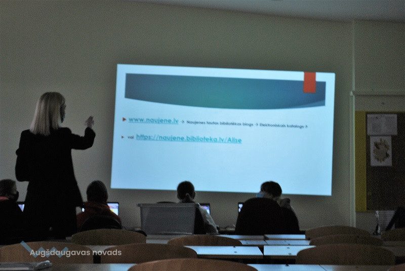Nodarbības laikā mūsu skolēni iepazinās ar Augšdaugavas novada bibliotēku elektronisko katalogu https://naujene.biblioteka.lv/alise un tā izmantošanas iespējām. Darbojoties praktiski, izglītojamie iemācījās atrast nepieciešamo izdevumu pēc nosaukuma, autora vai tēmas, kā arī pārliecinājās, vai meklētais izdevums ir bibliotēkas krājumā, vai ir pieejams, vai ir izsniegts lasītājam. Bibliotekāre pastāstīja, ka reģistrētajiem bibliotēkas lietotājiem tiek piedāvāta iespēja izmantot autorizētā lietotāja iespējas: pagarināt grāmatas lasīšanas laiku, rezervēt grāmatu vai pierakstīties rindā, ja grāmata izsniegta citam lasītājam. Skolēni uzzināja, ka ikvienam lasītājam ir iespēja bezmaksas lasīt latviešu autoru un tulkotos darbus e-grāmatas formātā tiešsaistē viedierīcē vai datorā, izmantojot pakalpojumu 3td e-GRĀMATU bibliotēkā.