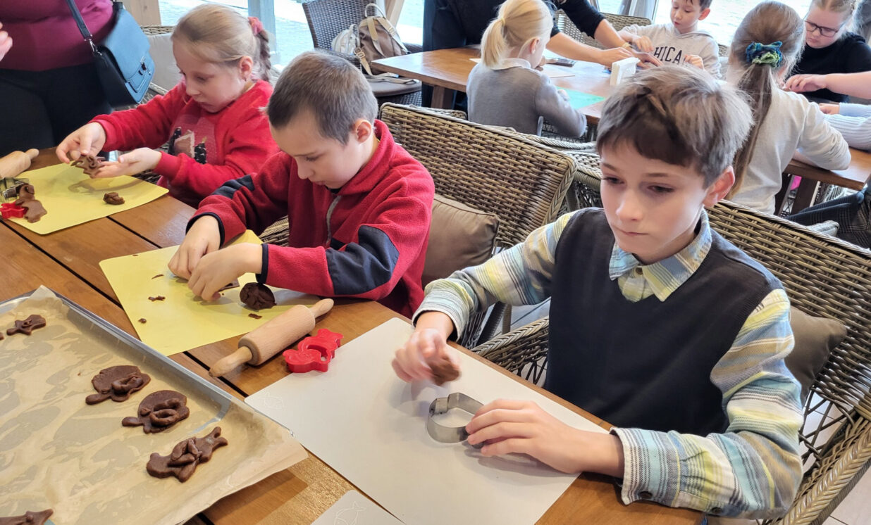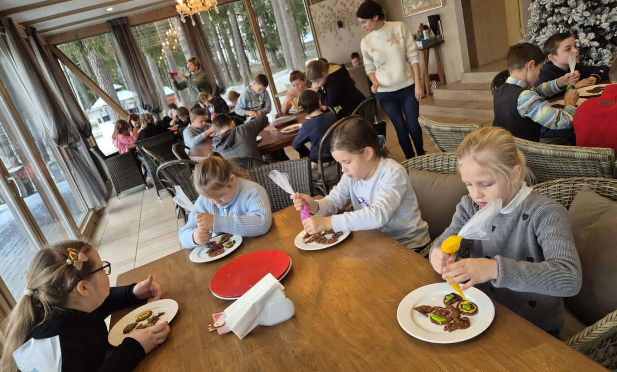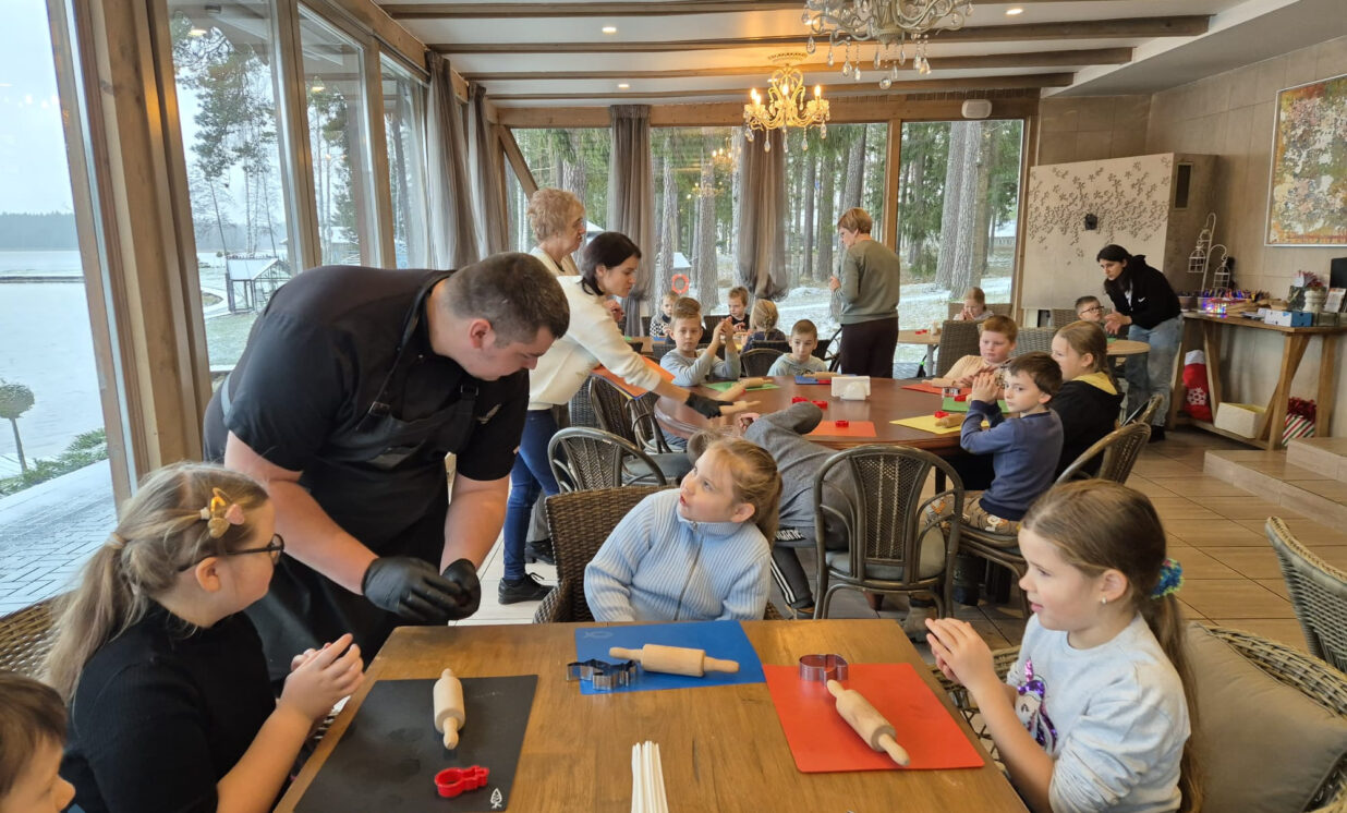 Pirmais piedzīvojums bija tikšanās ar mini zoo iemītniekiem – bērni ar lielu prieku apskatīja dzīvniekus tos Terases šefpavāra vadībā paši veltnēja mīklu un izgrieza dažādas formas piparkūkas . Īpaši jautrs un aizraujošs bija piparkūku dekorēšanas posms, kurā katrs varēja izpausties pēc savām prasmēm un radošās iztēles.