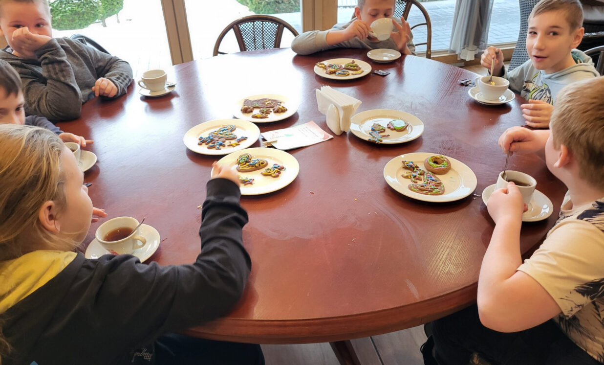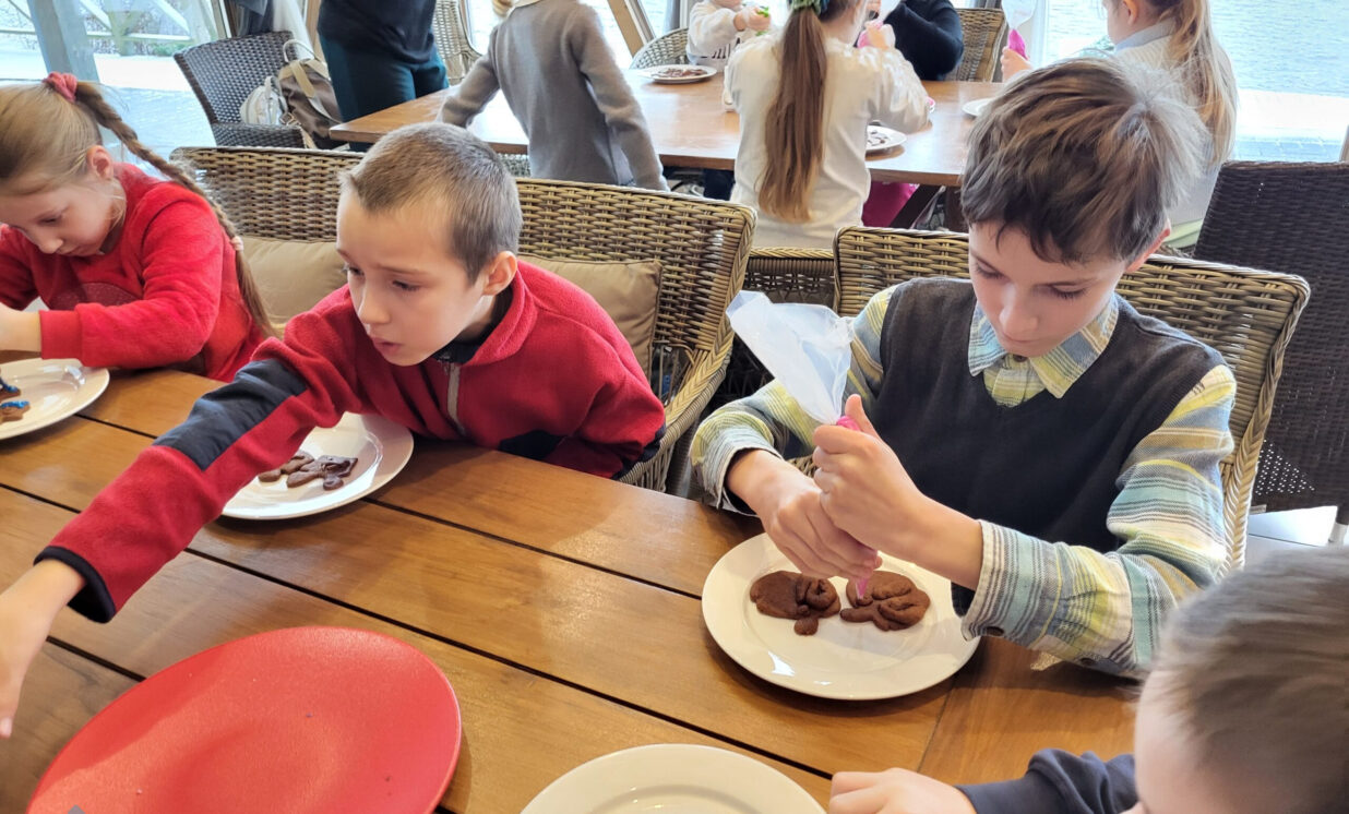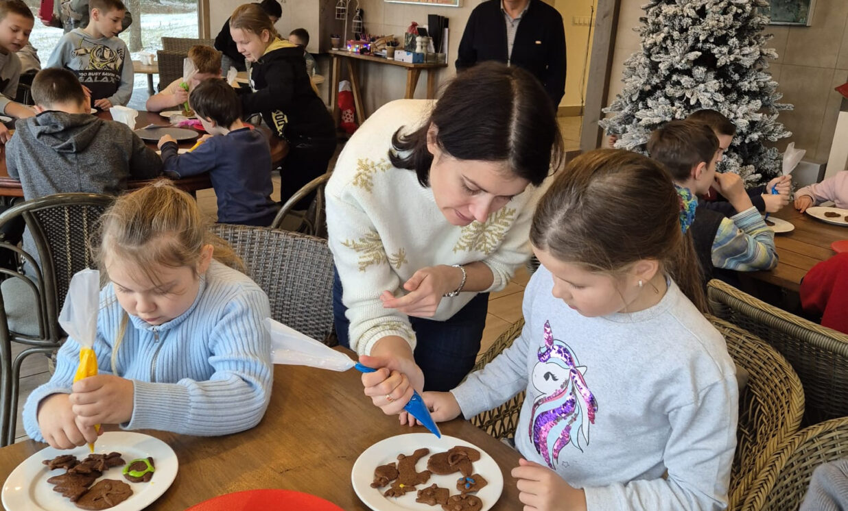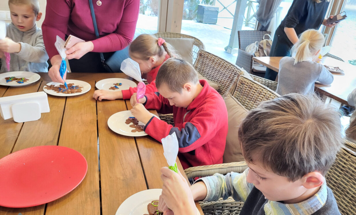 Pirmais piedzīvojums bija tikšanās ar mini zoo iemītniekiem – bērni ar lielu prieku apskatīja dzīvniekus tos Terases šefpavāra vadībā paši veltnēja mīklu un izgrieza dažādas formas piparkūkas . Īpaši jautrs un aizraujošs bija piparkūku dekorēšanas posms, kurā katrs varēja izpausties pēc savām prasmēm un radošās iztēles.