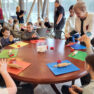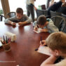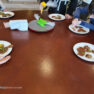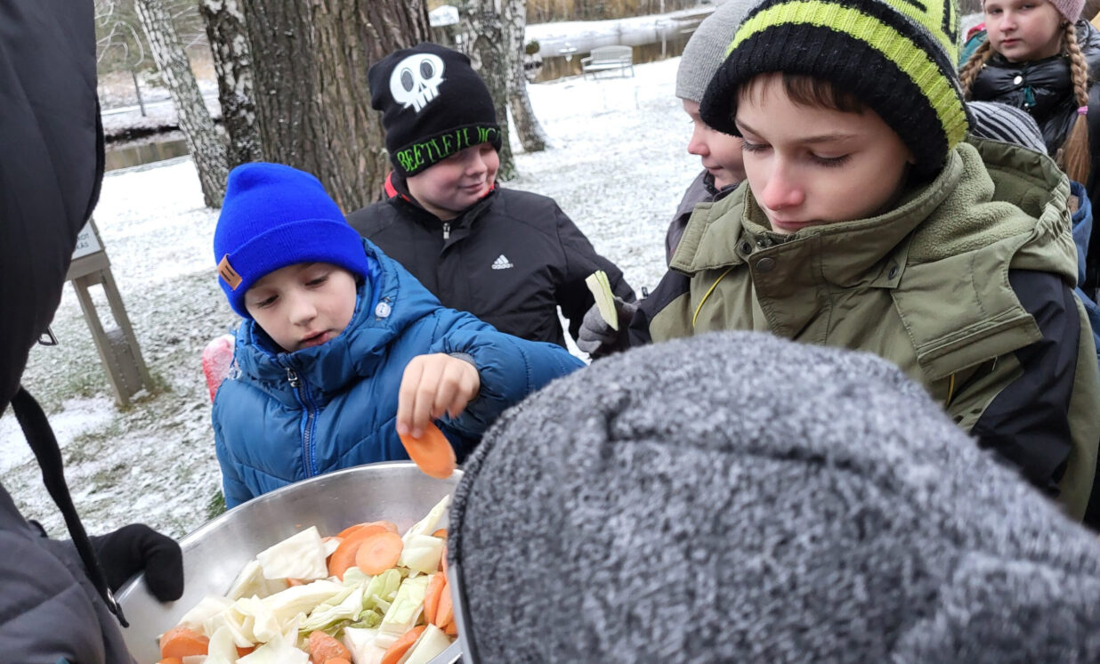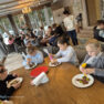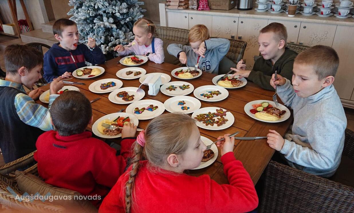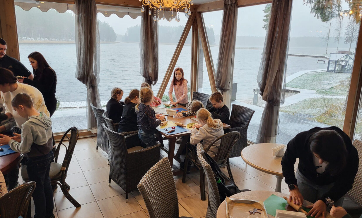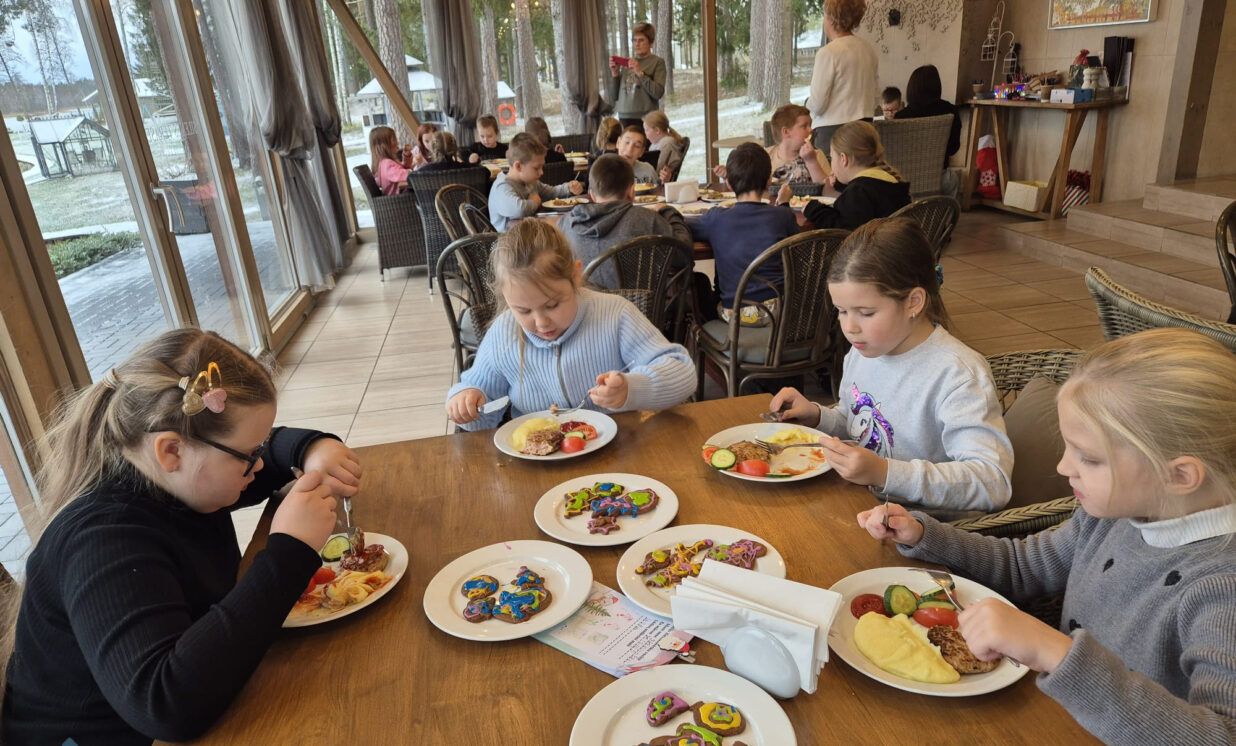 Pēc labi paveikta darba skolēni baudīja maltīti restorāna telpās. Šajā laikā viņi ne tikai mielojās, bet arī apguva galda etiķetes pamatus. Tukšie šķīvji bija apliecinājums tam, ka maltīte bija garšīga!