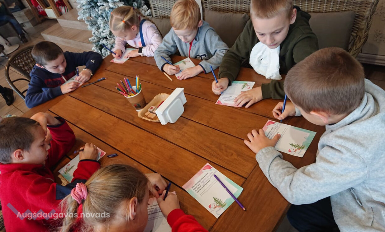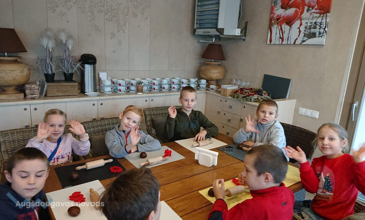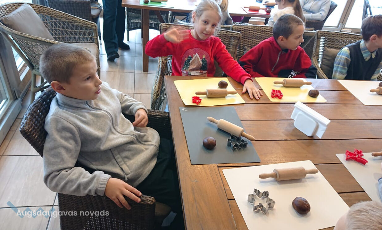 Kamēr cepās piparkūkas, visi kopā dziedājām Ziemassvētku dziesmas, rakstījām vēstules Ziemassvētku vecītim, izsakot savas vēlmes un sapņus par svētkiem, un darbojāmies ar piparkūku burtiņiem.