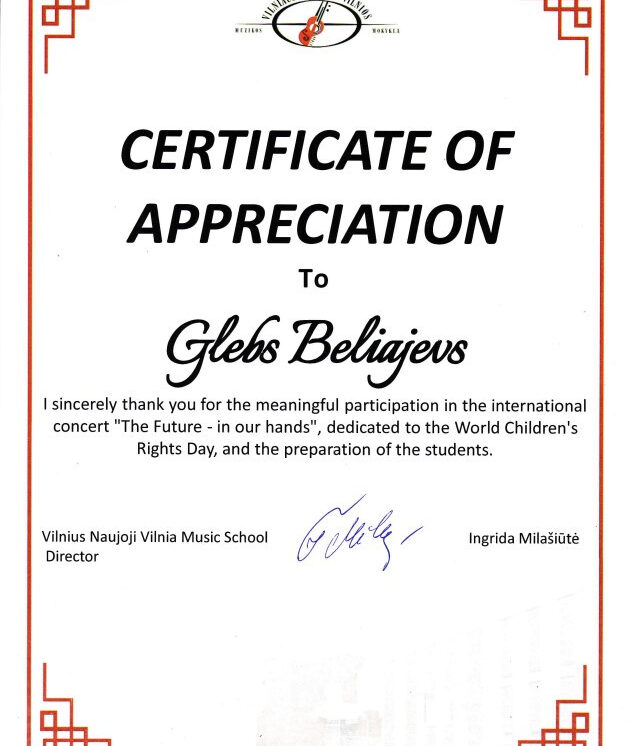 Koncerta laikā skolas delegācijai bija iespēja novērtēt citu valstu mūzikas skolu izpildītāju līmeni un kvalitāti. Tajā piedalījās Naujenes Mūzikas un mākslas skolas 3.klases klarnetes spēles audzēkne Evlalija Savicka (skolotājs Voldemārs Skutāns, koncertmeistars Gļebs Beļajevs).