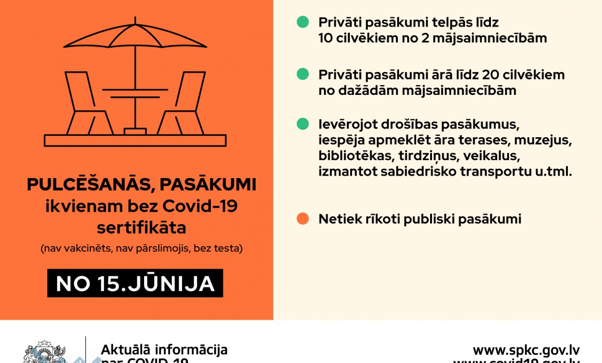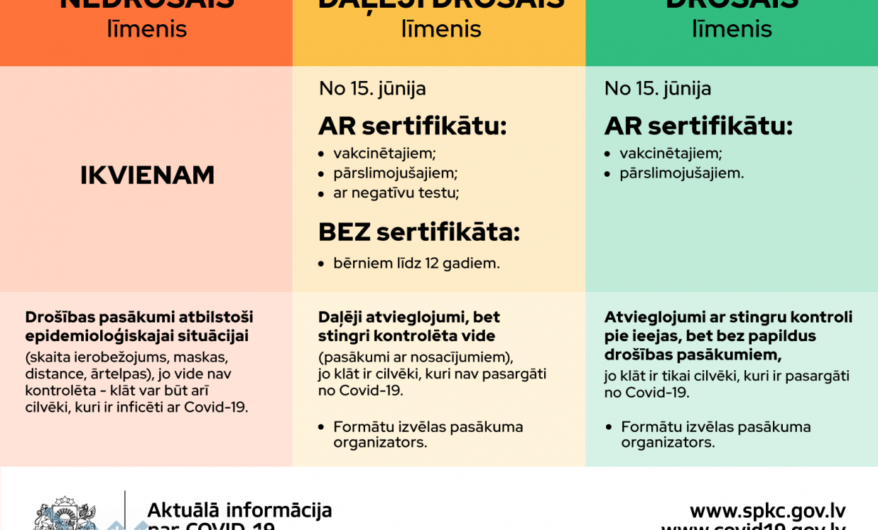No 15. jūnija stājas spēkā vairāki Covid-19 ierobežojumu atvieglojumi