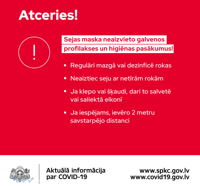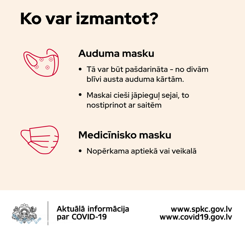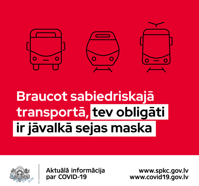 Ņemot vērā, ka saslimstība valstī nedēļas laikā ir pieaugusi divas reizes, kā arī lai varētu vēl neierobežot pulcēšanos un saimniecisko darbību, tika pieņemts lēmums uz laiku ieviest drošības pasākumus sabiedriskajā transportā. Atšķirībā no šā gada pavasarī ieviestajiem piesardzības pasākumiem šoreiz tiks atļauts lietot tikai sejas maskas, kas cieši pieguļ sejai. Maskai jābūt tādai, lai tā ļautu brīvi elpot un būtu ērti lietojama, kā arī sejas maska jāmaina, kad tā ir kļuvusi mitra vai netīra. Tāpat tiek pieļauta viziera vai sejas vairoga lietošana.