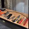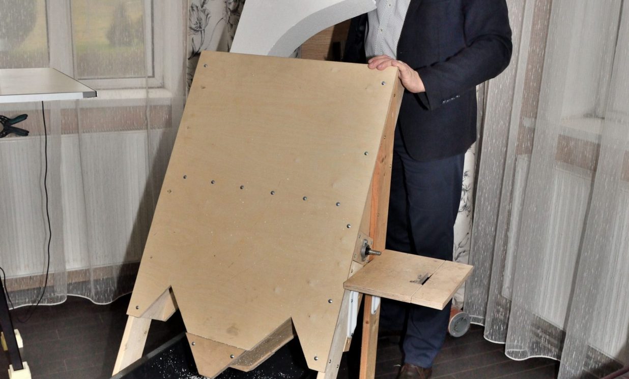 Viss sācies gluži nejauši. Siltinot tēvam pagrabu ar putuplasta loksnēm, Viktors aizdomājies, kāpēc tik interesants materiāls netiek nekur citur izmantots, kā vien celtniecībā. Sākumā pamēģinājis ar rokas zāģi izzāģēt no putuplasta figūras, tās slīpēt un līmēt, taču nekas prātīgs no tā nav sanācis, izņemot kaudzi samaitāta materiāla. Taču neveiksmes Viktorā pamodinājušas izgudrotāju, un drīz vien viņš uzmeistarojis nopietnu darbgaldu. “Izpētīju, ka industriāli putuplasts tiek griezts ar stiepli. Paskatījos, ka šāda iekārta maksā no 5000 eiro, un nolēmu uztaisīt pats,” stāsta Viktors, nodemonstrējot šo iekārtu darbībā. Četru asu darbgalds uzmeistarots no dažādiem pieejamiem materiāliem, piemēram, viņš izmantojis vecu datoru ventilatorus un radio detaļas. Uz tā var izgriezt dažādas figūras jebkurā leņķī un biezumā. Viktors smejas, ka pāris reizes dabūjis ar elektrību pa pirkstiem, līdz viņa izgudrojums sācis pilnvērtīgi strādāt. Pirmie putuplasta dekori, kas sākotnēji izmantoti Sventes TN izrotāšanai, pamazām pārtapa mākslas darbos un 2018. gada nogalē tika piedāvāti plašākai apskatei personālizstādē “Krāsas iedvesmots”, ko Viktors veltīja Latvijas simtgadei. Ar to bija āķis lūpā, un radošo ideju maisam gals nu bija vaļā. Par to varēja pārliecināties arī pērnā gada nogalē, kad tautas namā tradicionālo egli aizstāja neparasta konstrukcija no putuplasta – gan oriģināli, gan vienai eglei izglābta dzīvība.