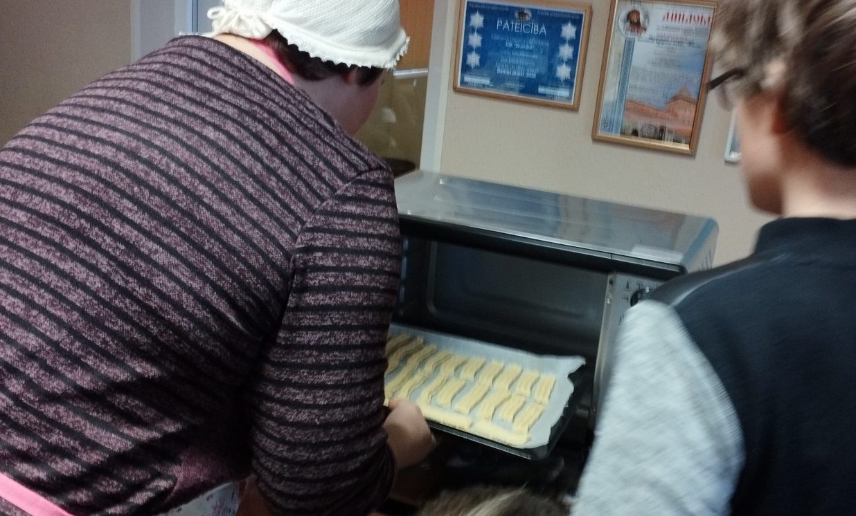 6.marta pēcpusdienā Maļinovas pagasta saieta namā gaisā virmoja kārdinošas smaržas un pagasta iedzīvotāji, gan lieli, gan mazi pulcējās uz radošu darbnīcu. Maļinovas pagasta bibliotēkas vadītāja Elvīra Kokina sadarbībā ar Saieta nama vadītāju Natāliju Davidovu nolēma atcerēties aizmirstas receptes, bez kurām agrāk neiztika nevienos saviesīgos pasākumos tie ir Tējas cepumi kurus gatavojot izmantoja gaļas maļamo mašīnu un speciālas formiņas.( Izrādās, ka mehānisko gaļas maļamo mašīnu atrast ir problēma, jo lielākā daļa izmanto elektriskās, paldies Ilonai Jefimovai ar kuras gādību Bibliotēkas novadpētniecības stūrītī jauns eksponāts – gaļas maļamā mašīna, ar roku darbināma.) Manā bērnībā mamma šos cepumus cepa vai ik sestdienu, bērnībā man šie cepumi ne pārāk garšoja, nu bet tagad ir gardi gan. Radoša darbošanās sevišķi ieinteresēja bērnus kuri šāda veida cepumus ar vecākiem nebija cepuši. Vispirms gatavojām mīklu. Mīkla tika gatavota divas porcijas un otrā porcijā pievienojām kakao garšas dažādībai. Pirmo mīklas porciju gatavojot stāstīju ko un cik lieku, un jau otro porciju gatavojot katru soli jautājām bērniem, kuri priecīgi komentēja kas un kā jādara. Kad sagatavojām mīklu sākās pats interesantākais posms cepumu gatavošana caur gaļas mašīnu, bērni tika nostādīti rindā, jo gaļas mašīnas rokturi griezt gribēja visi bez izņēmuma, un nogaršot mīklas gabaliņu. Un tās minūtes kas lēni vilkās kad cepumi tika ielikti cepeškrāsnī, tā vien likās ka jau gatavi. Un kad smarža sāka kairināt degunu, tāds gandarījums par rezultātu. Cepumi sanāca ļoti garšīgi jo tika darīts ar mīlestību un tik daudzu mazu rociņu palīdzību. Paldies aktīvajiem pagasta iedzīvotājiem par dalību.