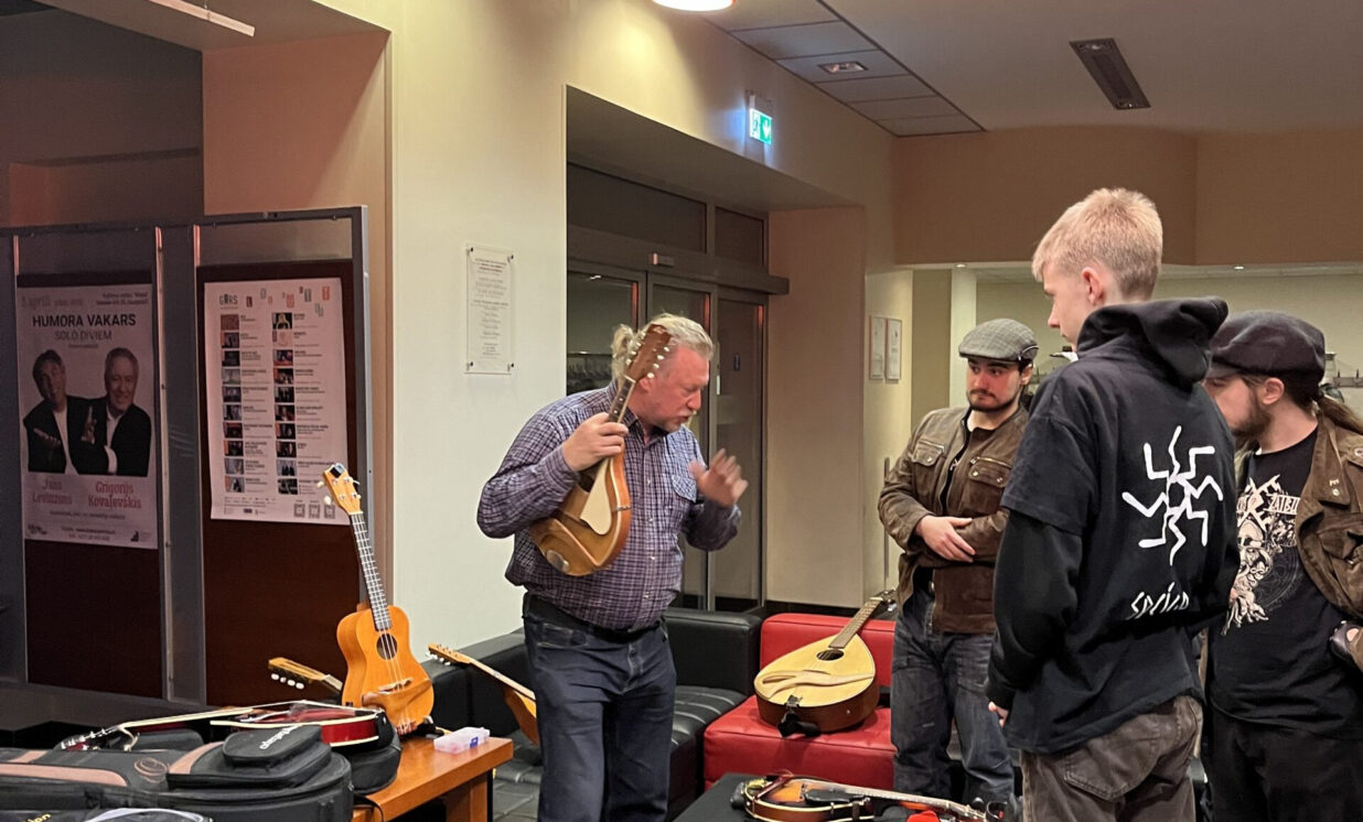 Šajā dienā Skrindu dzimtas muzejā bija arī tikšanās ar Gitaru Andrijausku, kurš visiem klātesošajiem stāstīja par mandolīnu spēles tradīcijām Lietuvā un prezentēja savas privātās kolekcijas mandolīnas un ermoņikas, par katru instrumentu izstāstot aizraujošus stāstus un atgadījumus. Pavisam nejauši arī no Skrindu dzimtas muzeja krājuma tika eksponēta basa mandolīna, kas 20.gs. 60.gados tika spēlēta Vaboles skolas mandolīnistu ansamblī (ko apliecina vēsturiskās fotogrāijas no skolas arhīva) un ir, iespējams skolotāja K.Strupā