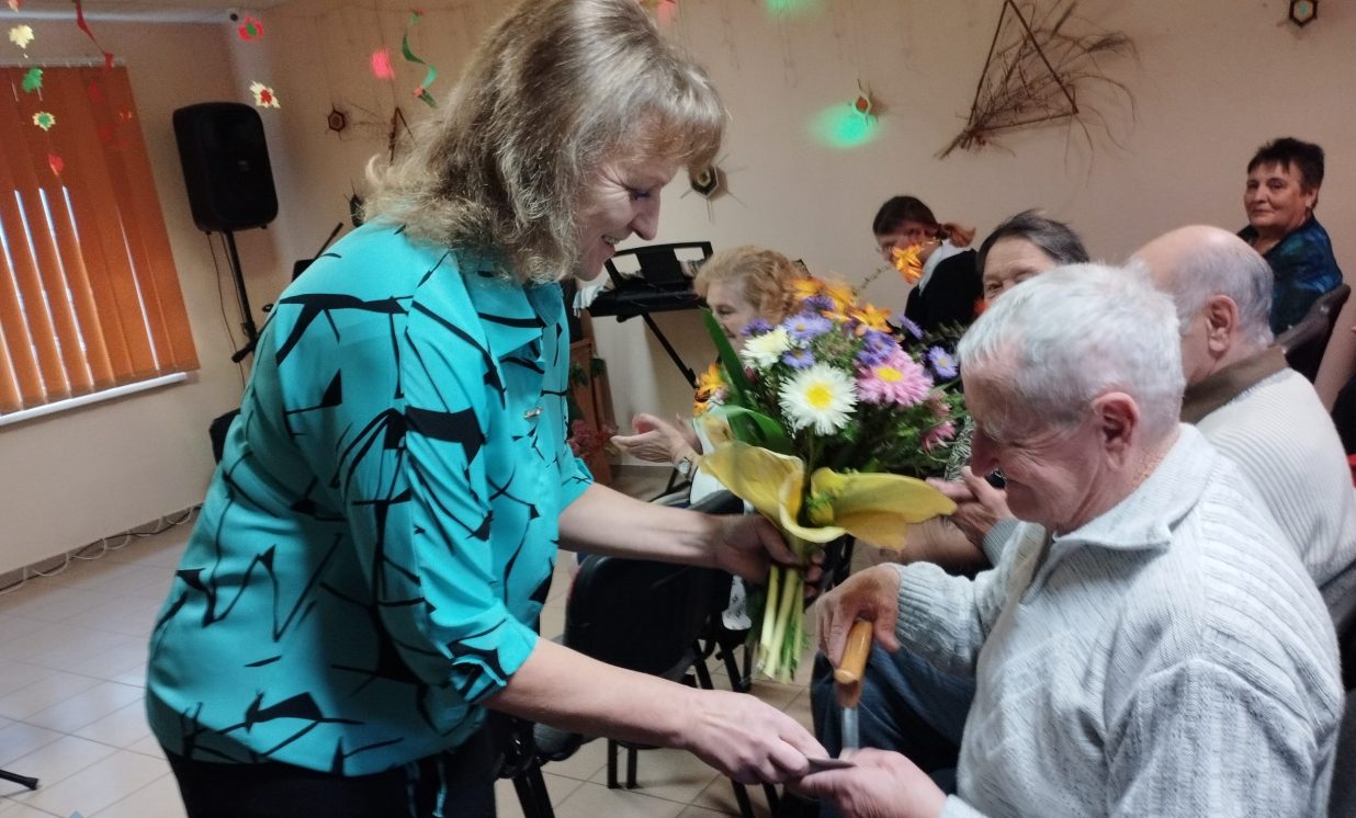 Savukārt, Augšdaugavas novada Sociālā dienesta vadītāja Anna Jegorova ne tikai sveica seniorus un cilvēkus ar īpašām vajadzībām, novēlot labu veselību un izturību, atsaucību un dzīvesprieku, iepazīstināja ar sociālā darba jaunumiem, kā arī pasniedza dāvanu – pīrāgus.