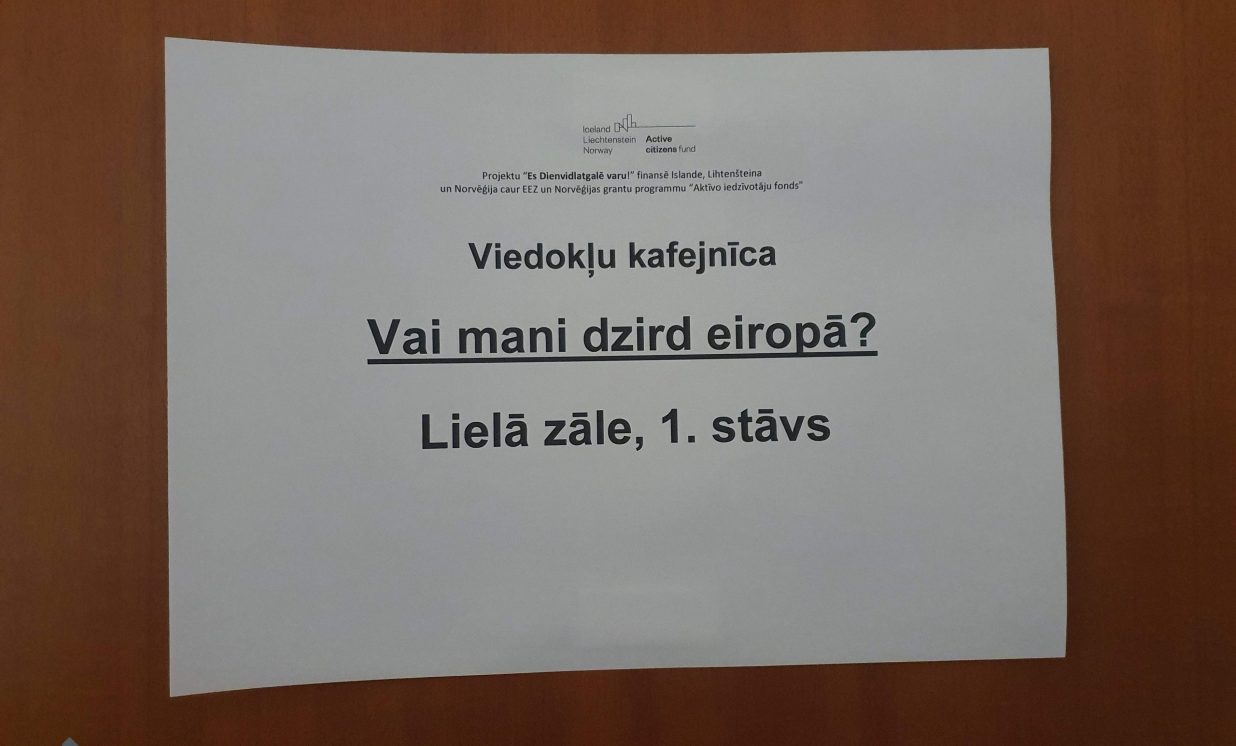 Savukārt viedokļu kafejnīcā “Vai mani dzird Eiropā?” Eiropas Inovāciju asociācijas vietējai attīstībai valdes loceklis Āris Ādlers un Eiropas Kustības Latvijā ģenerālsekretāre Liene Valdmane klātesošos aicināja saprast katram savu vietu Eiropā, runāja par iespējam ietekmēt lēmumus Eiropā, par esošajām ES iespējām un pašu dzīves kvalitātes uzlabošanas un ekonomikas attīstības iespējām.