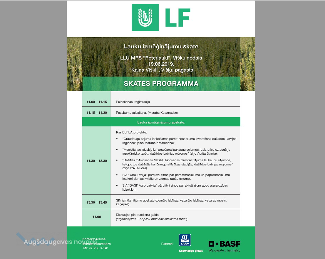 19. jūnijā no plkst. 11.00 norisināsies lauku izmēģinājumu skate “Kalna Višķos” Višķu pagastā.