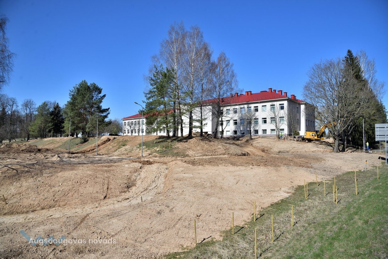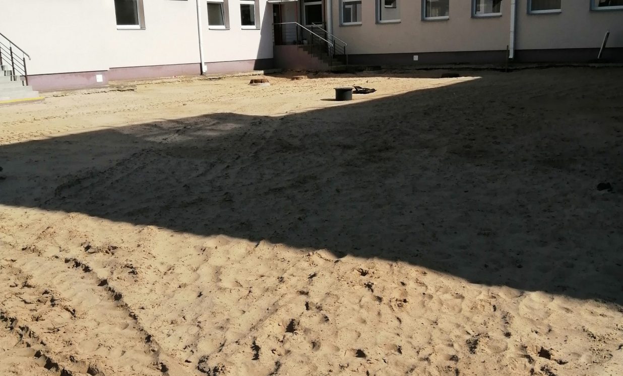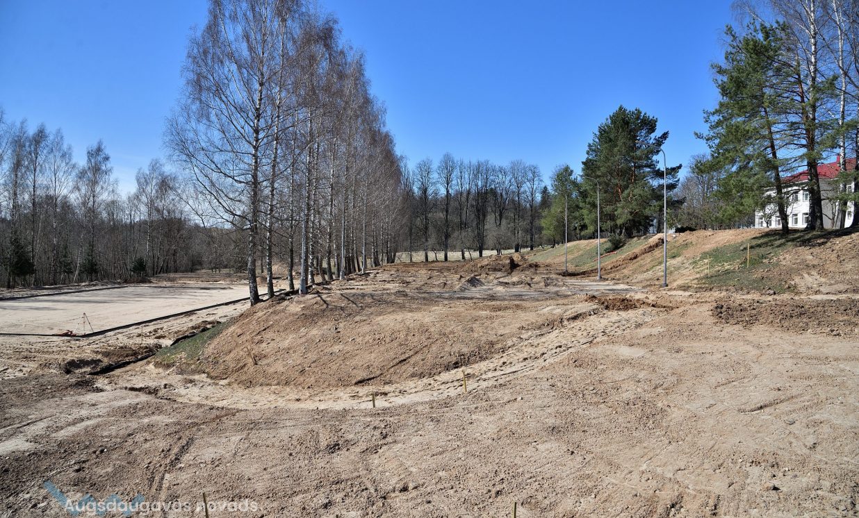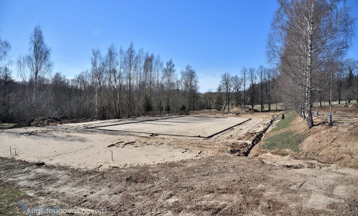Patlaban notiek darbi pie daudzfunkcionālā sporta spēļu laukuma ar sintētisko segumu un nožogojumu izveidošanas.