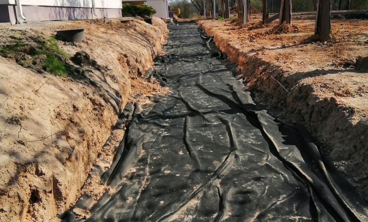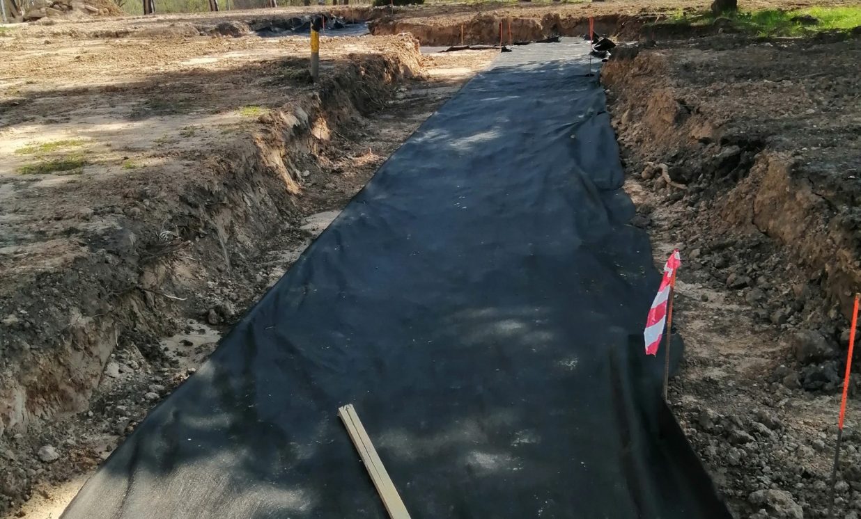 Pabeigti darbi ar drenāžas tīkliem, tos pēc projekta tika paredzēts no jauna izbūvēt 745,9 m garumā.
