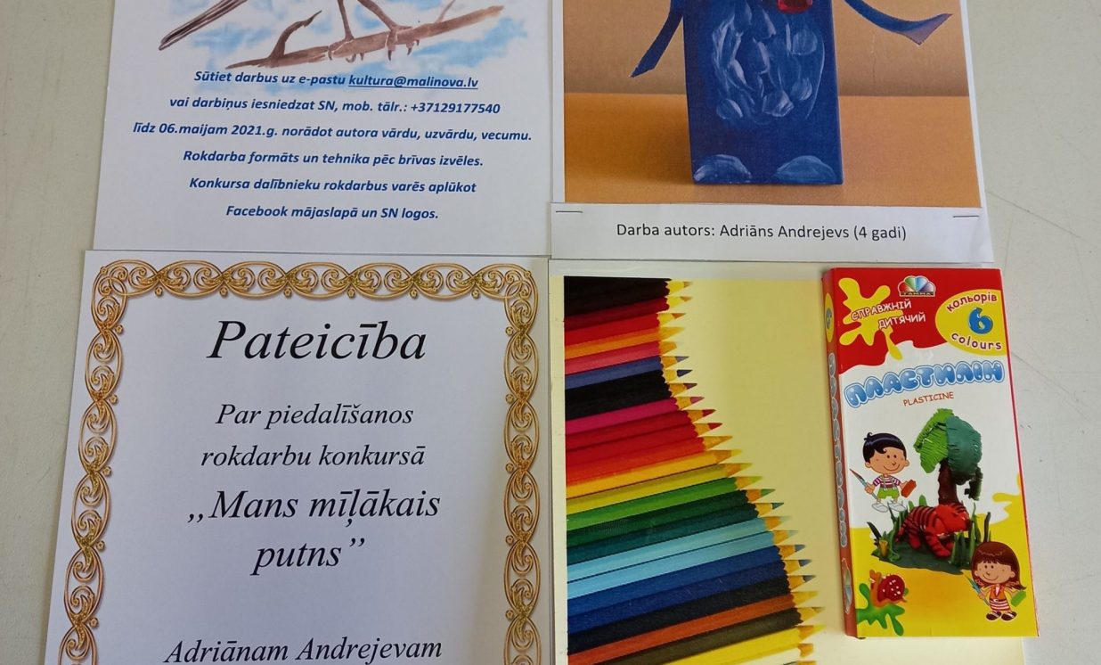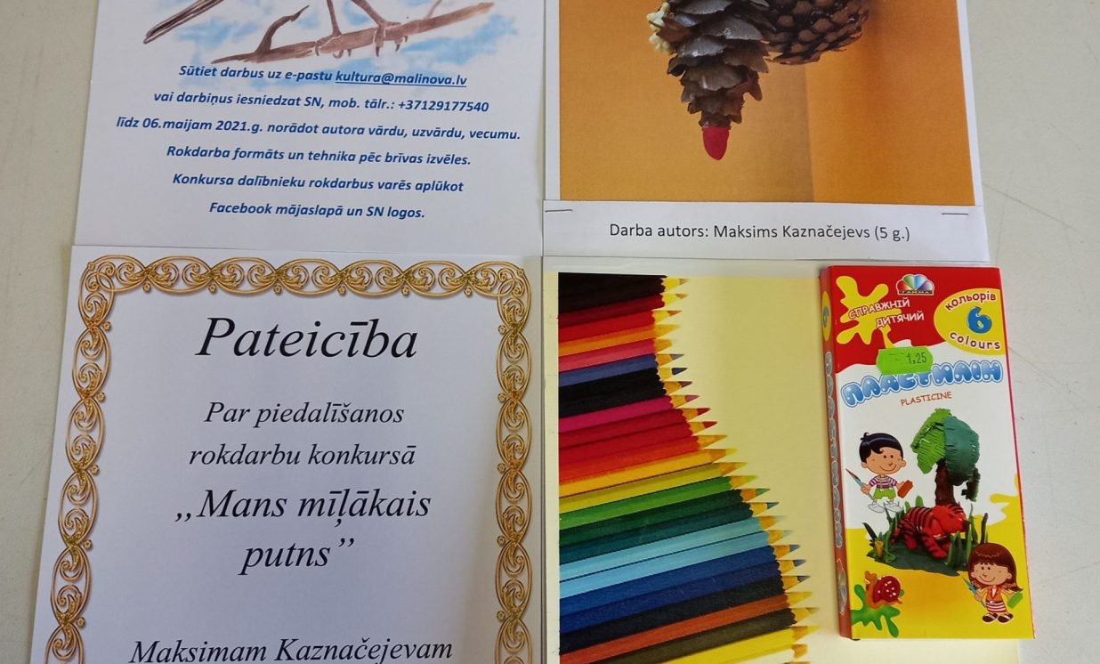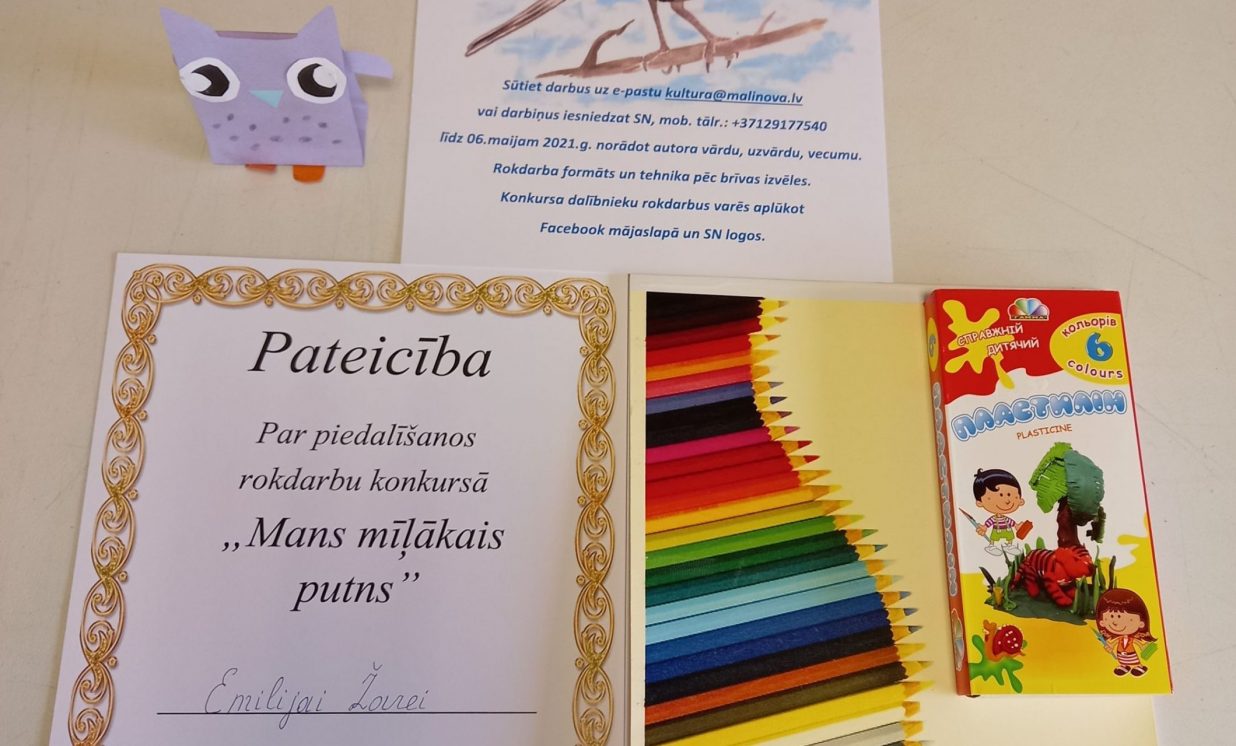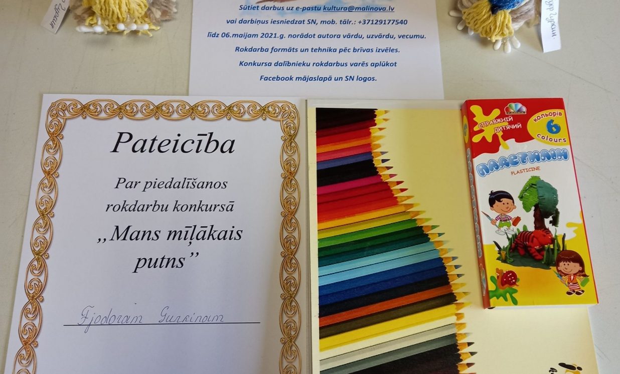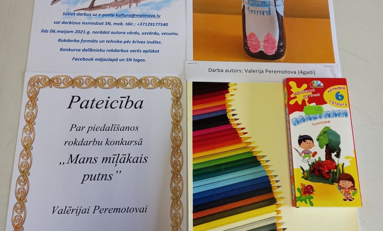 No 26. aprīļa līdz 6. maijam Maļinovas pagasta Saieta namā tika rīkots rokdarbu konkurss “Mans mīļākais putns”. Konkursā savus darbiņus iesniedza 13 bērni. Katrs izveidoja pa vienam rokdarbam, savukārt Fjodors Gurkins - divus rokdarbus. Rokdarbi tika izpildīti dažādās tehnikās - no aplikācijas un avīzes, plastilīna, diegiem, spalvām, pudelēm, čiekuriem un ozolzīlēm, koka detaļām.Visi dalībnieki saņēma pateicības un dāvanas.