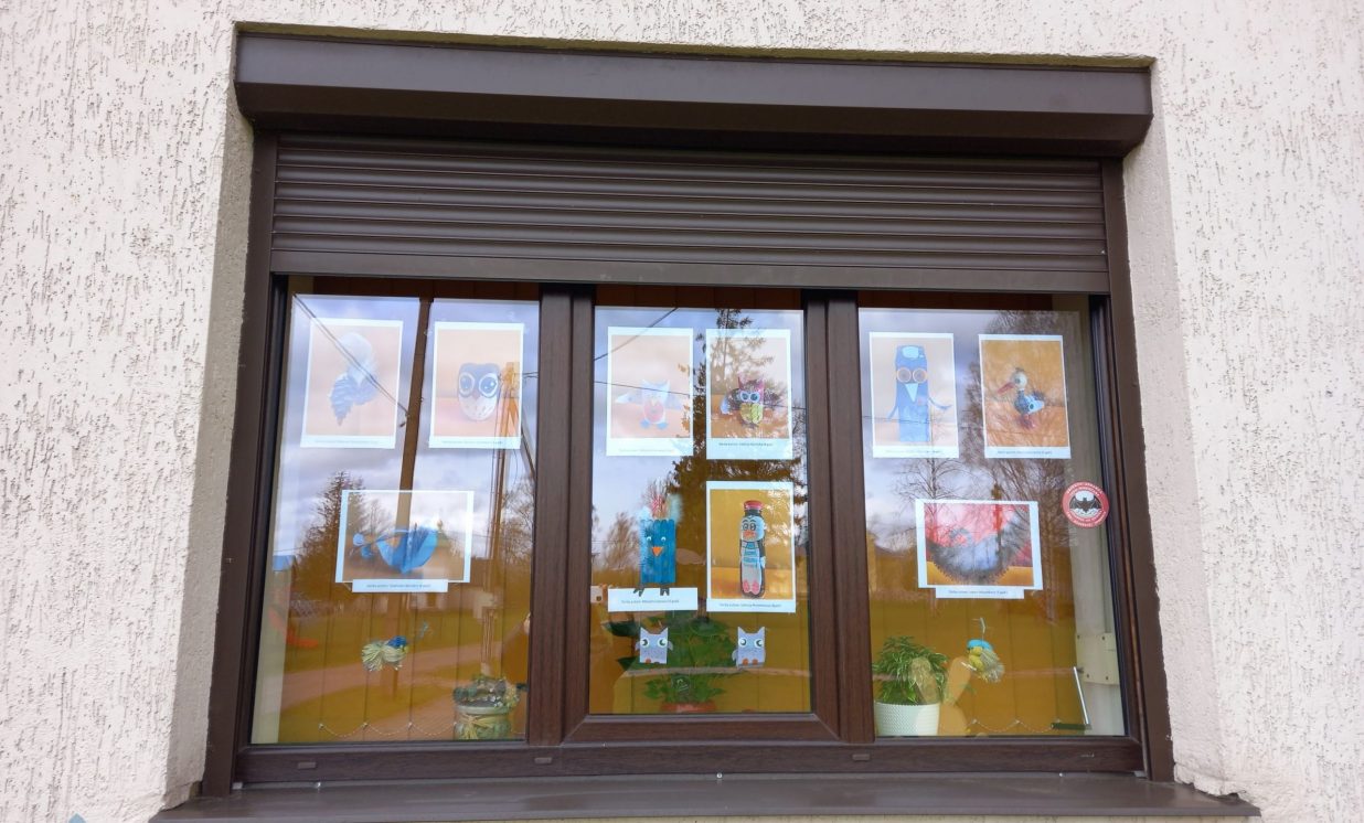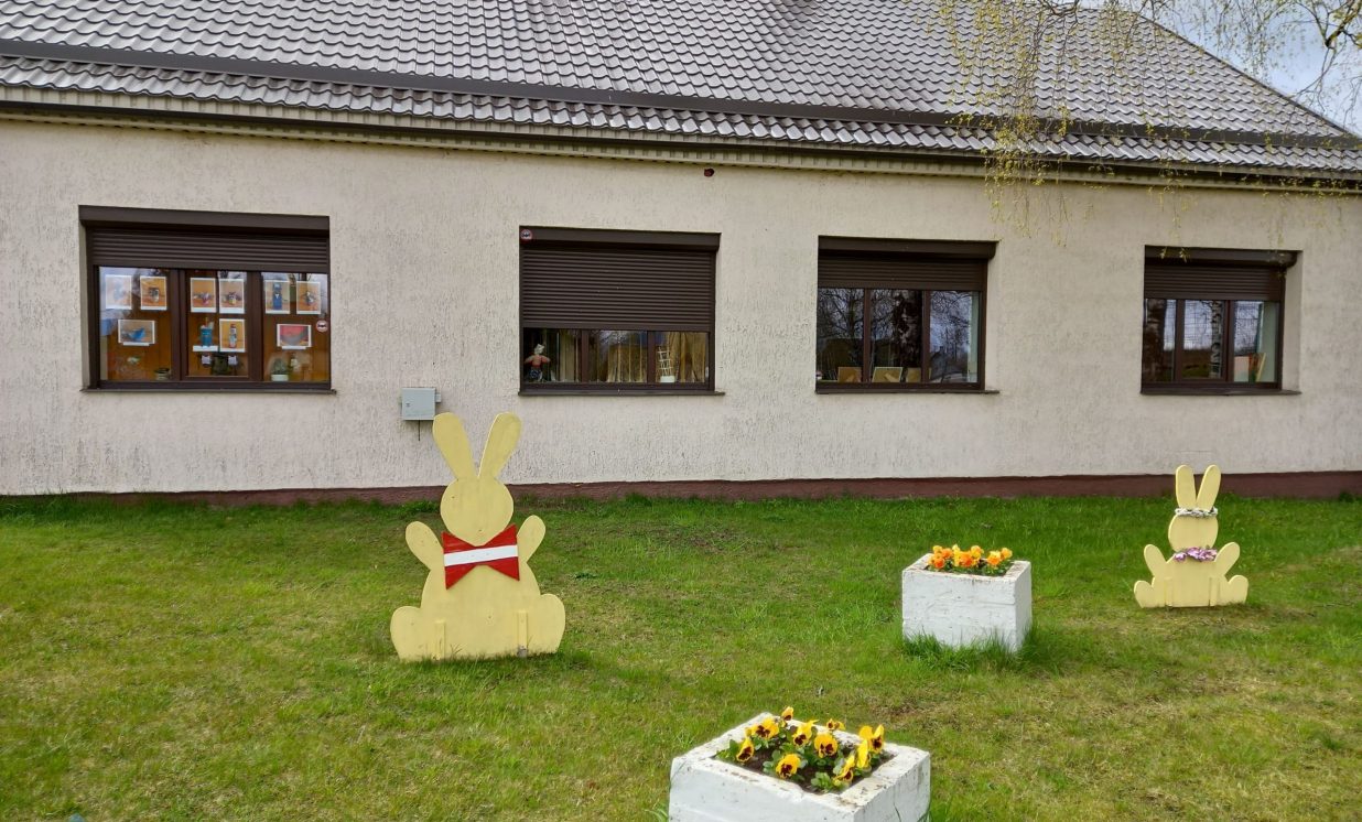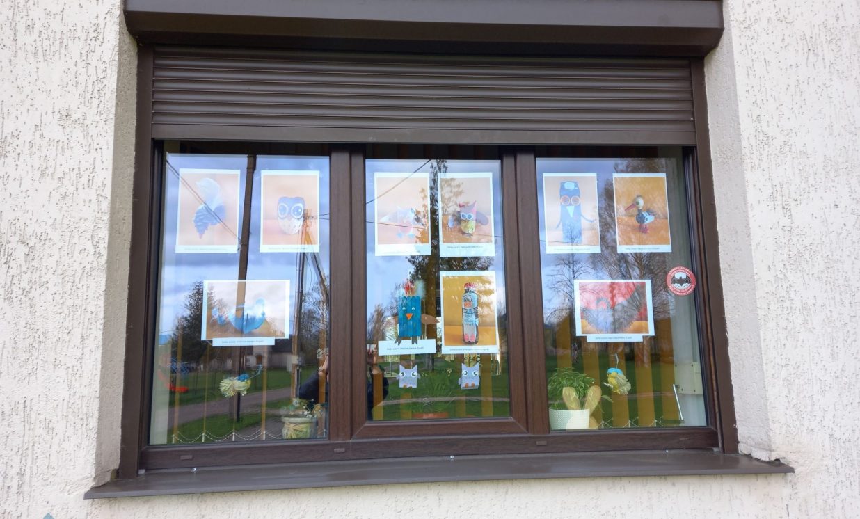 Katrs iedzīvotājs var aplūkot bērnu radošos darbus izstādē Saieta nama logos.