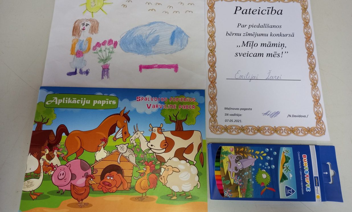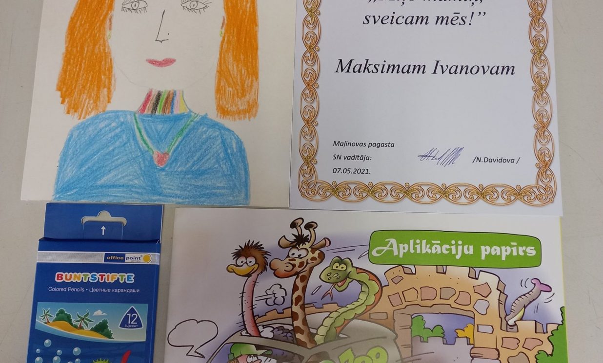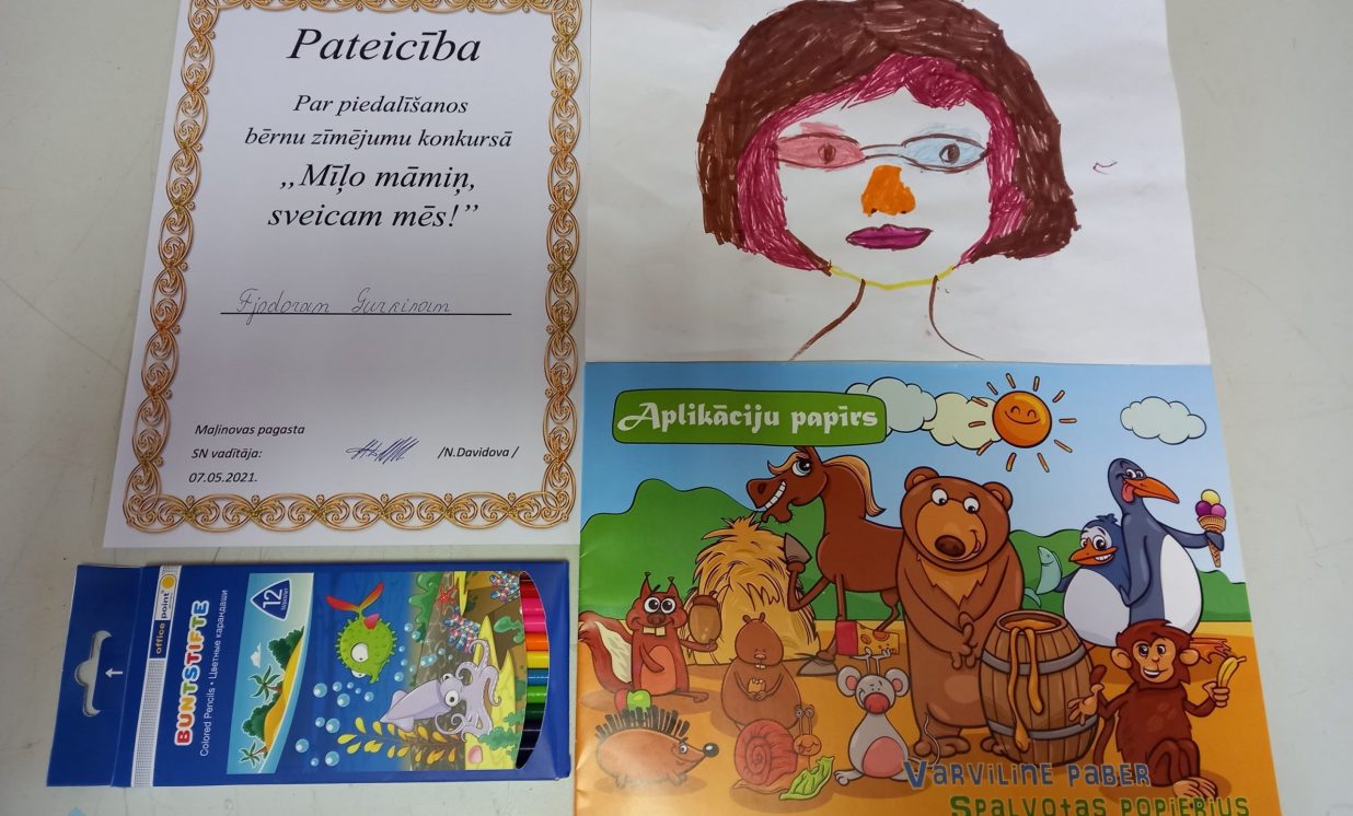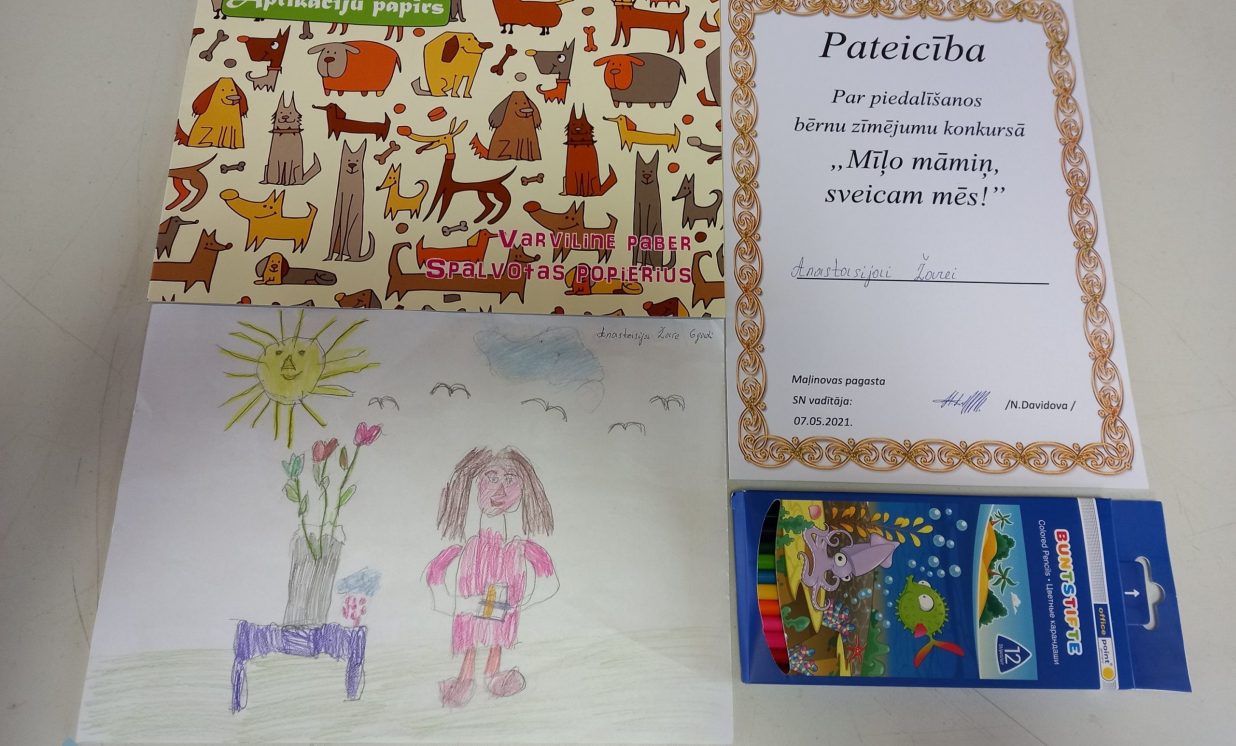 No 26. aprīļa līdz 7. maijam Maļinovas pagasta Saieta namā tika rīkots zīmējumu konkurss “Mīļo māmiņ, sveicam mēs”. Konkursā savus darbiņus iesniedza Fjodors Gurkins, Emilija Žare, Anastasija Žare un Maksims Ivanovs. Katrs uzzīmēja pa vienam zīmējumam. Zīmējumi tika izpildīti krāsaino zīmuļu tehnikā, guašas un akvareļu krāsās. Visi dalībnieki saņēma pateicības un dāvanas.