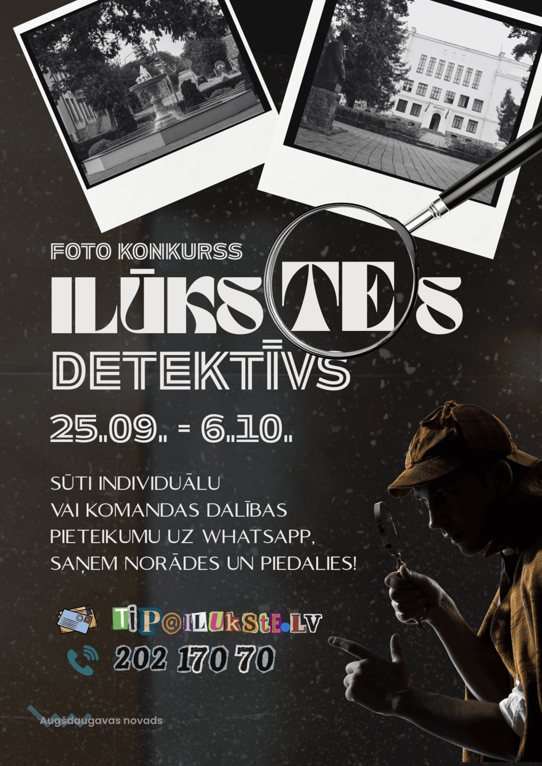 Konkurss, kas norisinājās no 2025.gada 25. septembra līdz 6. oktobrim, pulcēja aktīvus un radošus dalībniekus, kas ar detektīva cienīgu asprātību meklēja ziņojumos saņemtos pavedienus, objektus un ar radošumu dokumentēja savu atrašanās vietu uz to fona. Šis pasākums lieliski sasniedza savu mērķi – popularizēt tūrismu Ilūkstes pilsētā un rosināt iedzīvotājus un viesus redzēt zināmās vietas jaunā gaismā.