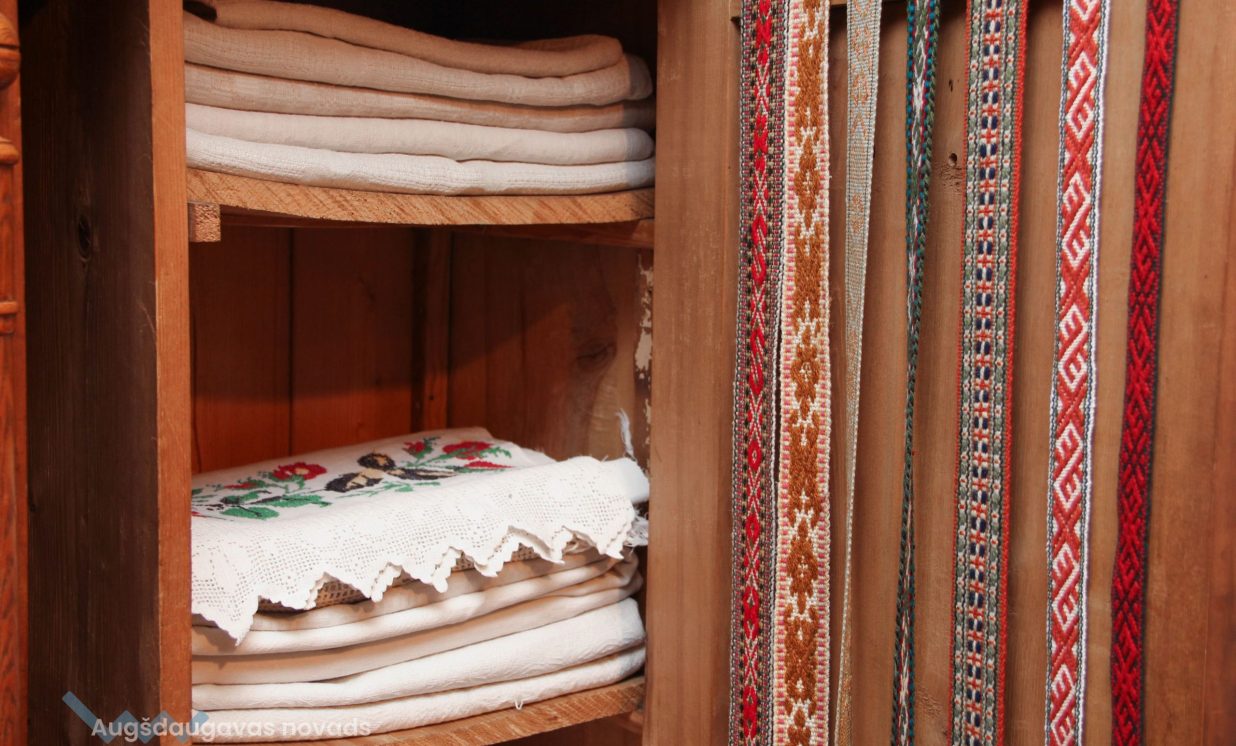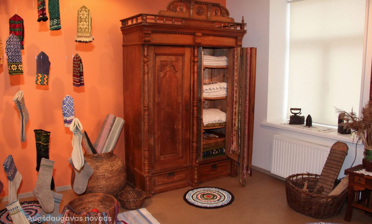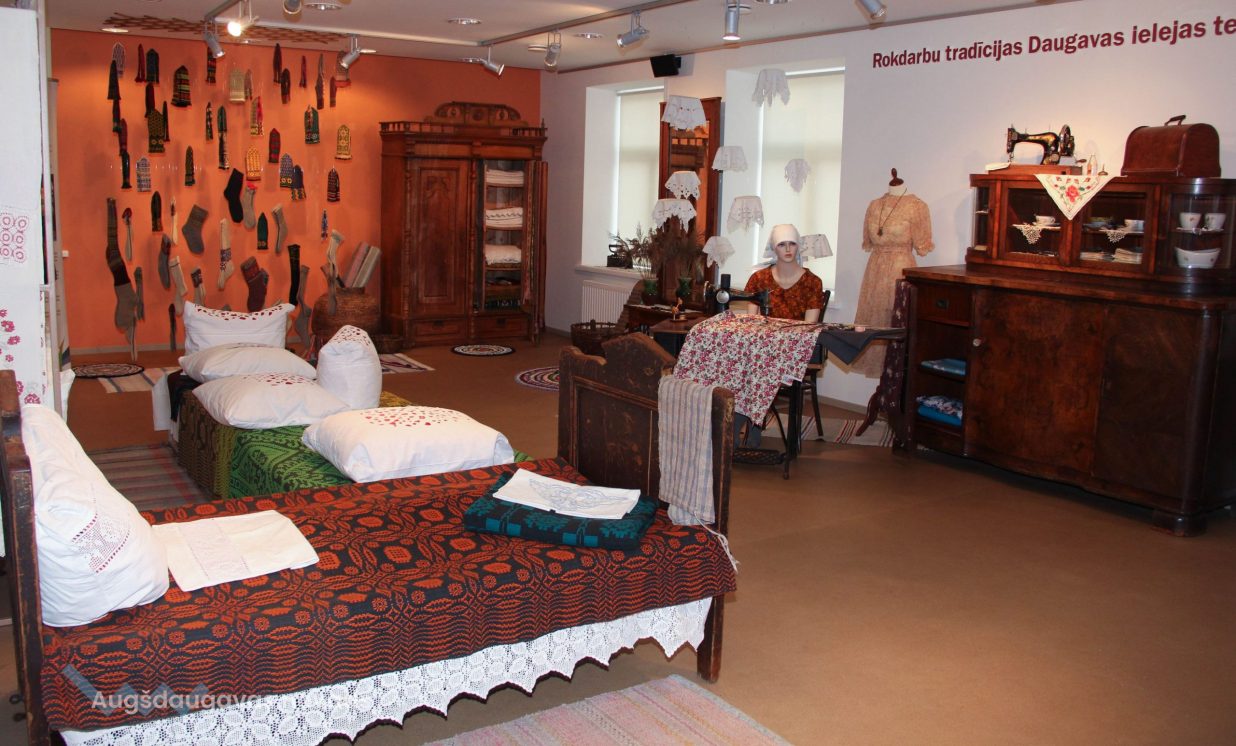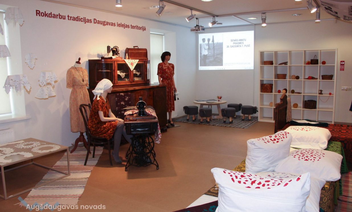 Otra izstāde ir veltīta rokdarbu tradīcijām Daugavas ielejas teritorijā, tajā var aplūkot cimdu, zeķu, jostu un segu kolekcijas, kā arī ekspedīciju laikā iegūtos priekšmetus. “Atsevišķā telpā ir apskatāma arī pinumu kolekcija, kuru veido projekta laikā iepirktie 20 grozi, kā arī muzeja krājuma priekšmeti,” stāsta Evita Kusiņa-Koļesņika.