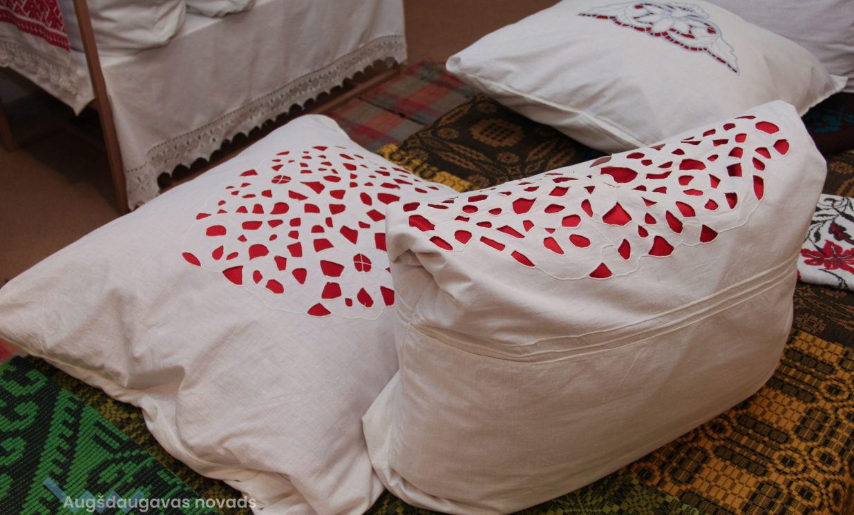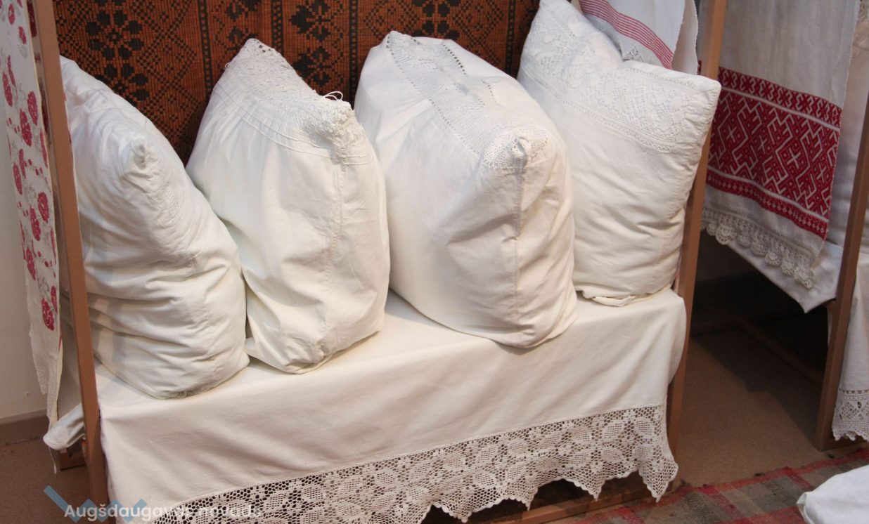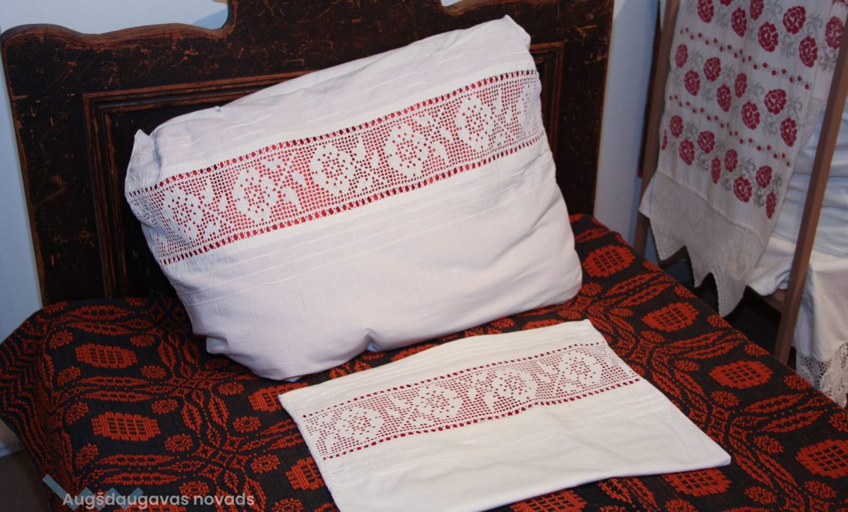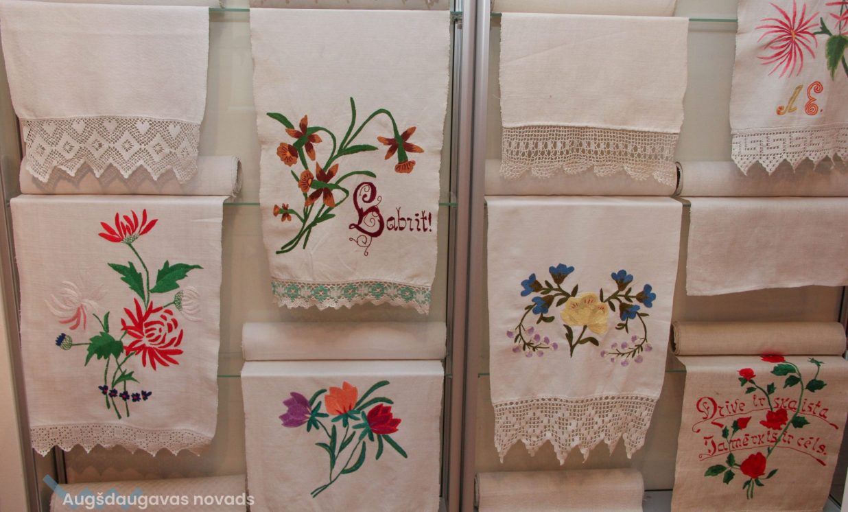 Otra izstāde ir veltīta rokdarbu tradīcijām Daugavas ielejas teritorijā, tajā var aplūkot cimdu, zeķu, jostu un segu kolekcijas, kā arī ekspedīciju laikā iegūtos priekšmetus. “Atsevišķā telpā ir apskatāma arī pinumu kolekcija, kuru veido projekta laikā iepirktie 20 grozi, kā arī muzeja krājuma priekšmeti,” stāsta Evita Kusiņa-Koļesņika.