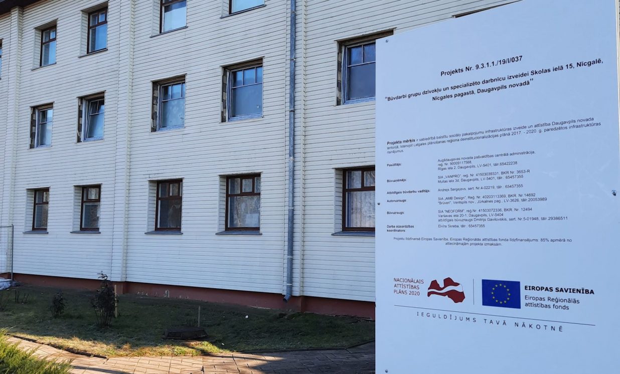 Projekta „Pakalpojumu infrastruktūras attīstība deinstitucionalizācijas plānu īstenošanai Daugavpils novadā”, Nr.9.3.1.1/19/I/037, ietvaros kopš 2021.gada septembra notiek būvdarbi ēkā Skolas ielā 15, Nīcgale, Nīcgales pagasts, Augšdaugavas novadā, lai tajā izveidotu grupu dzīvokļus un specializētās darbnīcas pieaugušām personām ar garīga rakstura traucējumiem (GRT). Plānotais klientu skaits grupu dzīvokļos - 16 personas un specializētajās darbnīcās - 20 personas. Būvdarbu gaitā paredzēts izveidot jaunu, personām ar īpašām vajadzībām pielāgotu ieeju specializētajās darbnīcās, uzstādīt pacēlāju, logu un durvju nomaiņu, ēkas fasādes atjaunošanu, jumta nomaiņu, veikt telpu pārplānošanu, izbūvējot dzīvokļus, virtuves, sanitāros mezglus, dušas telpas un telpas darbiniekiem, kā arī veikt teritorijas labiekārtošanu. Būvdarbu termiņš 2022.gada marts. Līdz projekta noslēgumam - 2022.gada 30.jūnijam, ir paredzēts iegādāties mēbeles un aprīkojumu gan grupu dzīvokļiem, gan specializētajam darbnīcām keramikas, šūšanas un filcēšanas un kokapstrādes jomās, lai uzsāktu sniegt sociālos pakalpojumus.