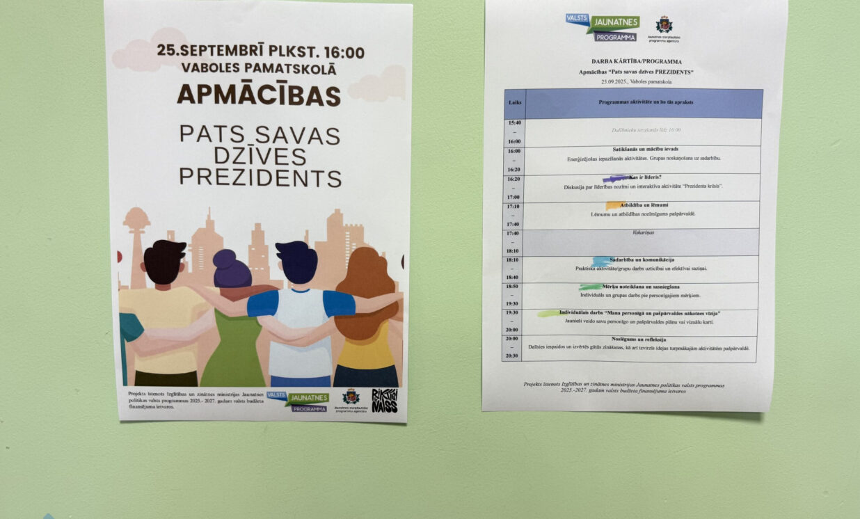Vaboles pamatskolā 25. septembrī notika apmācības “Pats savas dzīves PREZIDENTS”, kurās piedalījās skolas skolēnu pašpārvalde.