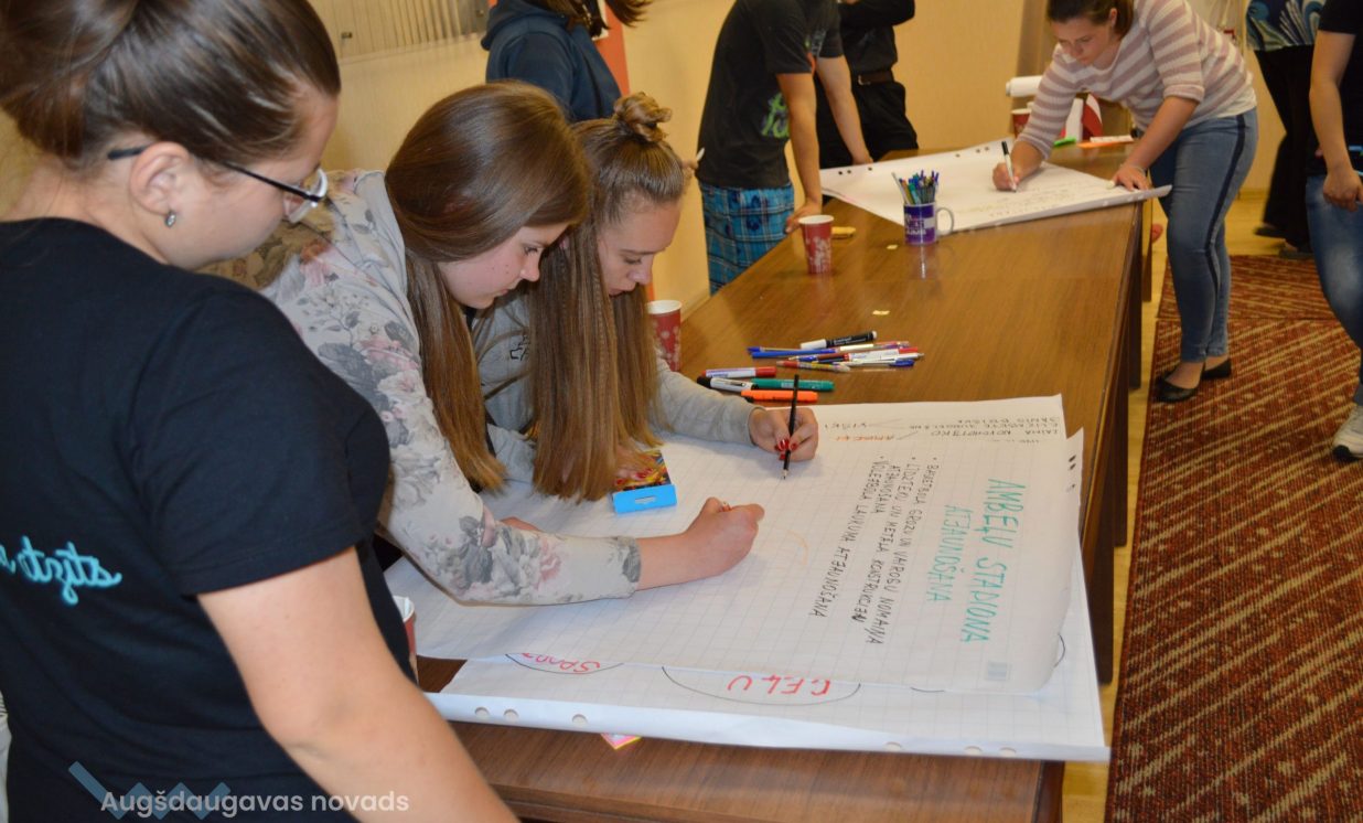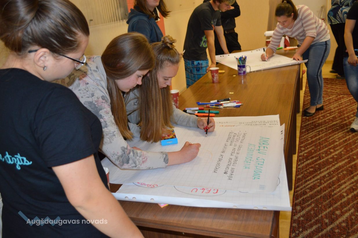 Tikšanās laikā jaunieši tika sadalīti trīs grupas. Jauniešiem vajadzēja iejusties Daugavpils novada domes deputātu vietās un pārdomāt jautājumus un izdomāt risinājumus problēmām, kuras viņi varētu risināt brīvā laika jomā, tūrisma un kultūras jomā, kā arī sabiedrības labā. No visām šīm idejām jauniešiem tika dots uzdevums izvēlēties vienu, kuru viņi varētu īstenot uz brīvprātīgā darba pamata, veidojot sadarbību starp pagastiem un ieguldot pēc iespējas mazāk finanšu līdzekļus. Kā rezultātā tiks stādīti koku stādi, kurus jauniešu iegūs par brīvprātīgi paveikto darbu koku audzētavās, labiekārtoti sporta laukumi, rīkotas sporta spēles, akustiskie vakari. Jauniešiem sava darba rezultātus būs jāprezentē projekta noslēguma pasākumā 30. septembrī profesiju naktī „Brīvprātīgs un atzīts”, kas norisināsies Špoģu vidusskolā.