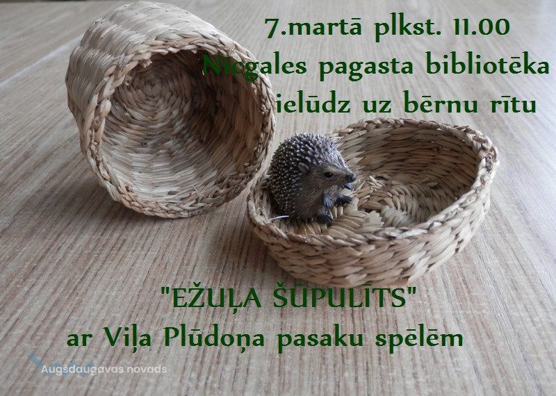 Notiks bērnu rītu “Ežuļa šūpulīts”05.03.2019Kultūra Nīcgales pagasta tautas bibliotēka 7. martā plkts. 11.00 ielūdz mazos lasītājus uz bērnu rītu “Ežuļa šūpulīts” ar dzejnieka Viļa Plūdoņa pasaku spēlēm.