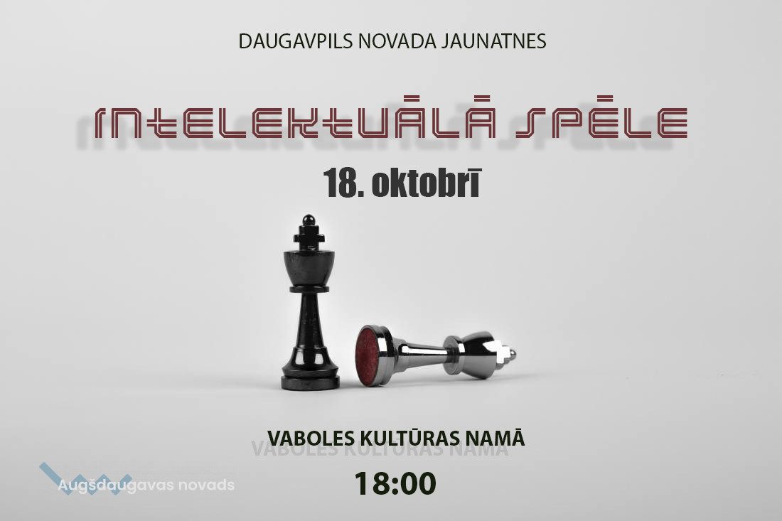 Notiks jaunatnes intelektuālā spēle10.10.2019AKTUĀLI 18. oktobrī plkst. 18.00 Vaboles kultūras namā norisinās 3. Daugavpils novada jaunatnes intelektuālā spēle 2019. gada sezonā. Aicinām pagastu komandas 3 līdz 6 cilvēku sastāvā pieteikties pie sava jaunatnes lietu atbildīgā līdz 14. oktobrim.
