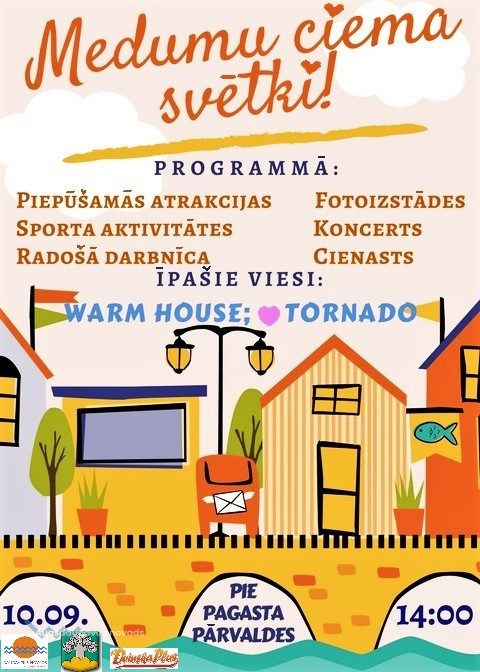 Notiks Medumu ciema svētki04.09.2017AKTUĀLI 10. septembrī plkst. 14.00 Medumi aicina uz ciema svētkiem! Svētku dalībniekiem būs iespēja piedalīties radošajās un sporta aktivitātēs, apskatīt fotoizstādes un izbaudīt svētku koncertu. Pasākums notiks laukumā pie pagasta pārvaldes ēkas.