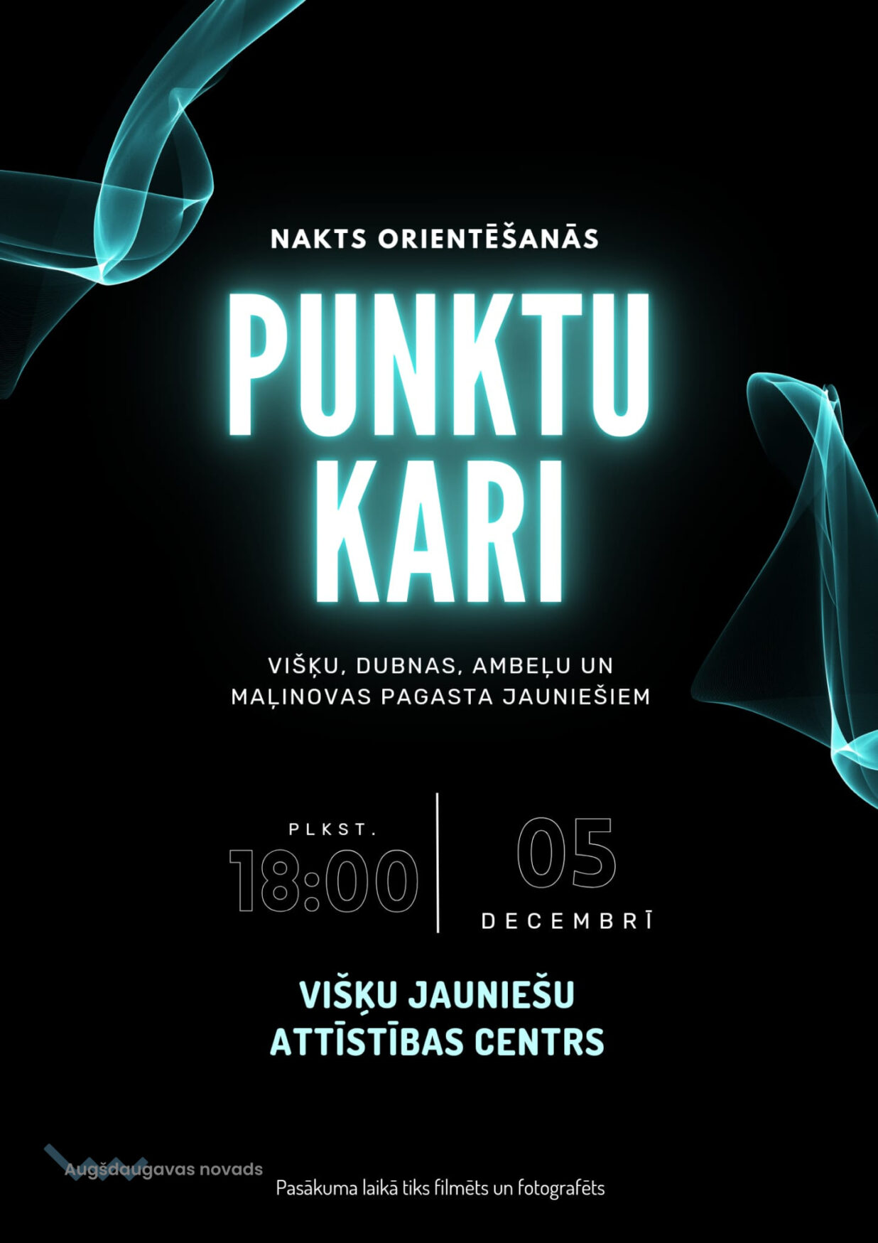 5. decembrī plkst. 18:00 Višķu jauniešu attīstības centrā norisināsies nakts orientēšanās "Punktu kari". Tiek aicināti piedalīties Višķu, Dubnas, Ambeļu un Maļinovas pagasta jaunieši. Komandā 2 cilvēki. Sakarā ar to, ka orientēšanās notiks ārā, lūgums saģērbties atbilstoši laika apstākļiem.