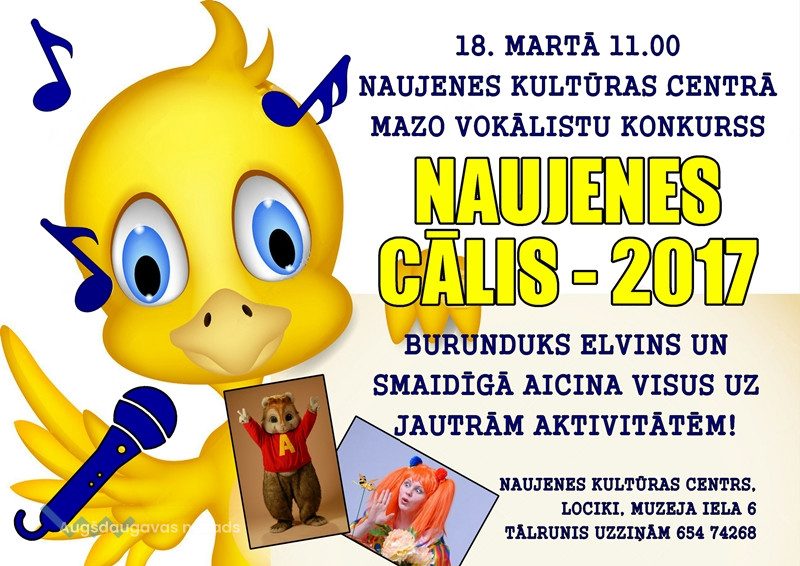 Naujenes Kultūras centrs aicina visus uz Naujenes pagasta mazo vokālistu konkursu “Naujenes Cālis 2017”!
