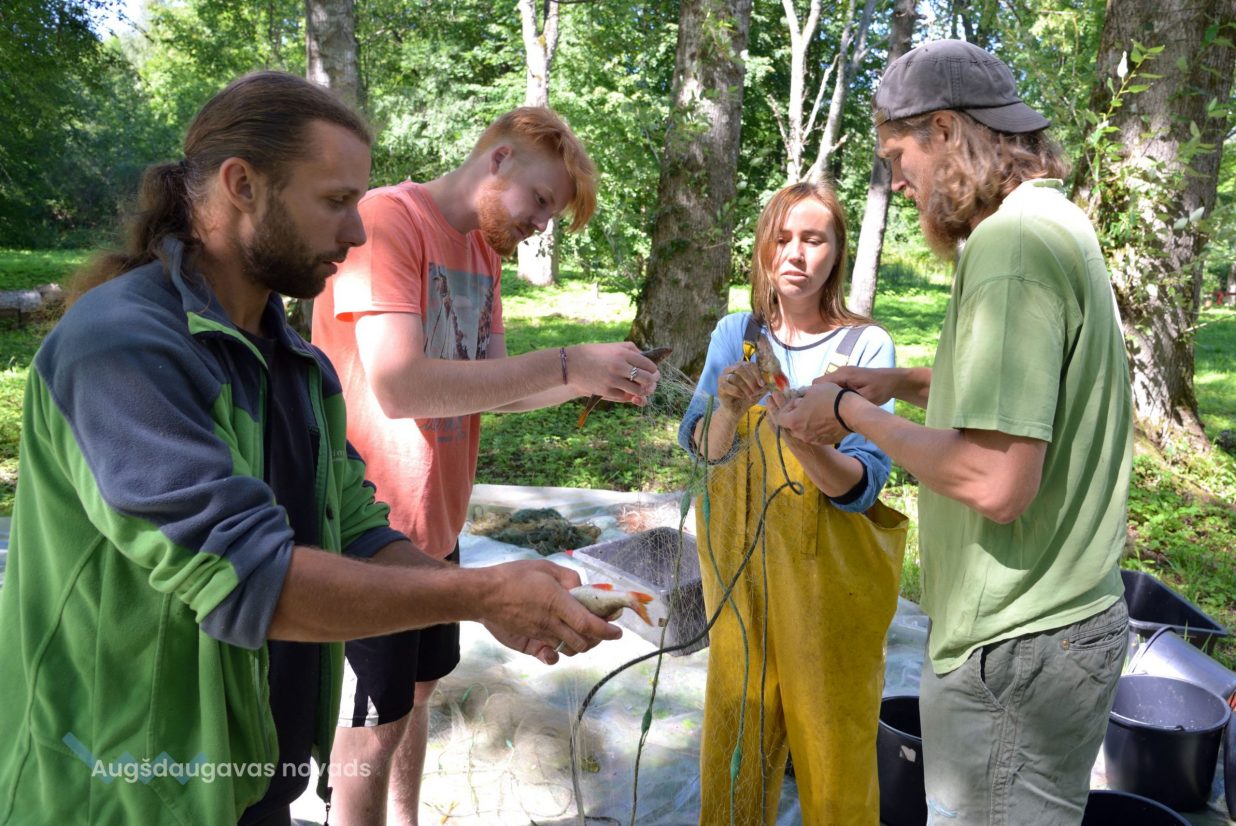 “Saimnieciski nozīmīgākajām zivīm, kas lielākoties ir plēsīgās zivis, mēs ievācam vecuma un kuņģa paraugus, lai noskaidrotu, ko tās ēd un kā to barošanās ietekmē kopējo ezera ekosistēmu. Ar vecuma parauga palīdzību tiek noskaidrots, cik ātri zivis aug. Piemēram, 19 cm garš asaris var būt gan 10, gan 20 gadu vecs, ja ezerā tam ir maz ēdamā,” pētāmos faktorus skaidro SIA “Vides risinājumu institūta” pētniece Madara Medne. “Mūsu uzdevums ir sagatavot zivsaimnieciska rakstura rekomendācijas. Lielākoties problēmu var atrisināt, pilnībā izskaužot malu zvejniecību, jo tieši uz lielajām, plēsīgajām zivīm, kas regulē mazo, neplēsīgo zivju populāciju, ir vislielākais makšķernieku un zvejnieku spiediens. Ja plēsējzivis pazūd, savairojas mazās zivis, kuras savukārt ēd zooplanktonu, kas ir mikroskopiski vēžveidīgie. Ja nav zooplanktona, netiek apēstas mikroskopiskās aļģes, tāpēc ezers var sākt ziedēt un stipri pasliktināties ezera ūdens kvalitāte,” tā par plēsējzivju vitālo lomu barības ķēdē turpina pētnieku grupas pārstāve.