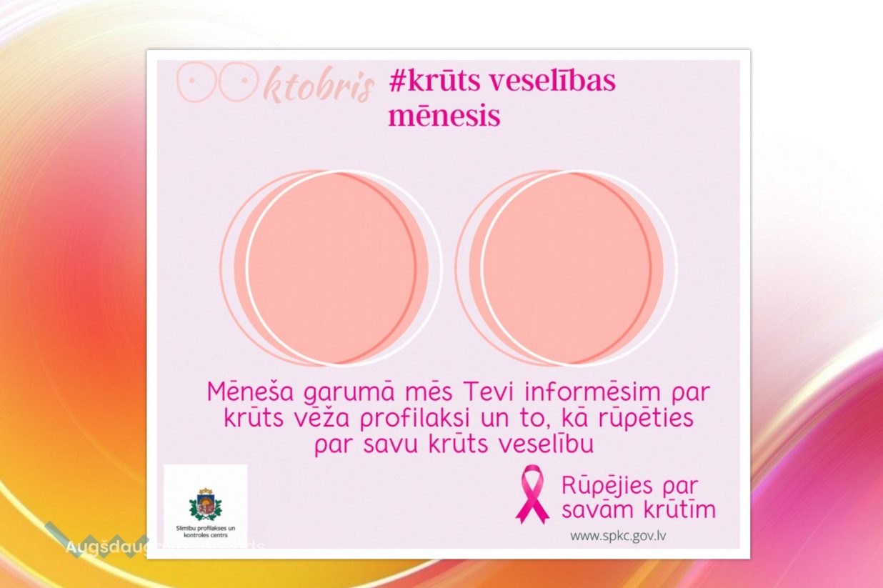 Vairāk info: https://ej.uz/info_spkc Izveido tradīciju – krūšu pašpārbaudes diena – 1x mēnesī! Vairāk info noskaties video: https://ej.uz/pasparbaudesvideo_issKas ir krūts vēža profilaktiskā pārbaude (skrīnings)? Tā ir valsts organizēta un apmaksāta profilakses pārbaude, kuras mērķis ir atklāt krūts vēzi agrīnā stadijā. Profilaktiskais krūšu izmeklējums ir mamogrāfija – rentgenoloģiska pārbaude. Atbildes uz jautājumiem meklē SPKC materiālā: https://ej.uz/SPKC_skrinings Vai jautā savam ģimenes ārstam vai ginekologam. Nav viena atbilde uz jautājumu, kāpēc rodas krūts vēzis. Ir vairāki faktori, kas var veicināt audzēja attīstības risku – tie ir gan bioloģiskie, gan ar dzīvesveidu saistītie. Tas, ko Tu vari ietekmēt – ir Tavs dzīvesveids un paradumi! Lasi vairāk: https://ej.uz/krutsvezis_spkc Veselīgi ēdot, ir iespējams saglabāt normālu ķermeņa masu! Liekais svars un aptaukošanās palielina risku saslimt ar krūts vēzi, jo īpaši pēc menopauzes iestāšanās. Vairāk ieteikumu veselīgam uzturam meklē šeit: https://ej.uz/uzturs_spkc Regulāras fiziskās aktivitātes palīdz uzturēt normālu ķermeņa masu! Liekais svars un aptaukošanās palielina risku saslimt ar krūts vēzi, jo īpaši pēc menopauzes iestāšanās. Vairāk ieteikumi fiziskām aktivitātēm: https://ej.uz/aktivitates_spkc Oktobris #krūts veselības mēnesis ir noslēdzies! Esam apkopojuši noderīgu informāciju par krūts vēža profilaksi un krūts veselību! Video “Krūšu pašpārbaude”: https://ej.uz/pasparbaudesvideoInformatīvais materiāls “Krūts vēža skrīnings” https://ej.uz/SPKC_skriningsInformatīvais materiāls “Kā pasargāt sevi no krūts vēža ielaišanas” https://ej.uz/krutsvezis_spkcInformatīvais materiāls “Krūšu pašpārbaude – ikmēneša rituāls” https://ej.uz/info_spkc Ieteikumi veselīgam uzturam: https://ej.uz/uzturs_spkc Ieteikumi fiziskām aktivitātēm: https://ej.uz/aktivitates_spkc