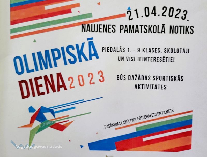 Š.g. 21. aprīlī Naujenes pamatskolā notika jau par tradīciju kļuvusī Olimpiskā diena. Olimpiskās dienas dalībniekus uzrunāja skolas direktors Pāvels BROVKINS, ka šis pasākums ir atgādinājums par veselīga dzīves veida un sportisko aktivitāšu nepieciešamību katram no mums arī ikdienā. Diena iesākās aktu zālē ar kopīgu deju, kuras izdejojot triju Olimpisko dienu vingrojumu kompleksus. To turpinājām ar kārtīgām sportiskām izdarībām: šaušana ar pneimatisko šauteni, galda tenisa bumbiņu trāpīšana glāzītēs, šautriņu mešana, metieni basketbola grozā, ķēdīte – skrējieni komandā uz laiku, bumbiņu ripināšana, šņoru siešana, riņķu mešana uz konusiem, lēcieni ar lecamauklu, šķēršļu joslas pārvarēšana, pārvietojoties ar velosipēdu, volejbols, virves vilkšana.