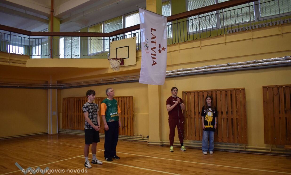 “Olimpiskās dienas 2024” atklāšana notika skolas sporta zālē ar Olimpiskās himnas atskaņošanu un karoga pacelšanu. Olimpiskā karoga pacelšanā piedalījās Špoģu vidusskolas absolvente, sportiste un trenere Adriana Kandu un skolas sportiskākie skolēni Maksims Ivanovs un Jana Kiričenko.