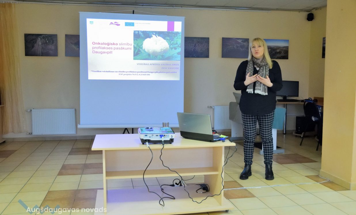 Onkoloģisko slimību profilakses pasākumu lekciju novadīt tika paaicināta Veselības aprūpes vadības ārste Inta Vaivode. Viņa atzīst, ka pasākumu interese ir ļoti liela: ”…mani pārsteidz situācija, ka ļoti daudzi cilvēki absolūti nav informēti par valsts programmu ietvaros realizētajiem pasākumiem veselības profilakses jomā, un, piemēram, pat tādi fenomeni kā: mums valstī kopš 2009. gada tiek realizēta agrīnā vēža profilakses programma, kas ir domāta gan vīriešiem, gan sievietēm, un man ir bijuši gadījumi, kad pacienti jeb klausītāji, šī projekta ietvaros pilnīgi neko nav dzirdējuši par valstī realizējamo agrīnā vēža skrīninga programmu. Tas ir diezgan bēdīgi tāpēc, ka to minimālo pakalpojumu apjomu, ko valsts piedāvā bezmaksas šajā profilakses programmā cilvēki nespēj izmantot tāpēc, ka viņi nezin par tādu programmu.”