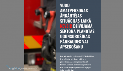 AKTUĀLI16.04.2020Iedzīvotāju ievērībai – ārkārtējas situācijas laikā VUGD neveic plānotās pārbaudes dzīvojamā sektorā Lasīt vairāk